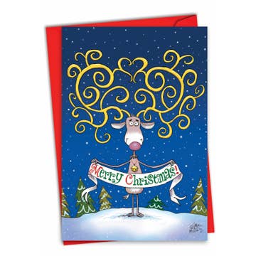 Look at this card. There's a reindeer on it. it's very Christmas-like. Happy Fucking Holidays. Our greeting cards are all designed and printed right here in New York in beautiful rich color. We use premium 100% recycled paper and package each card with a matching colorful envelope. Cards come in an eco friendly clear sleeve. Card size is A2 (5.5x4.25") and all cards are blank inside for your message.