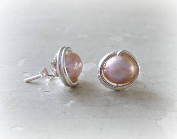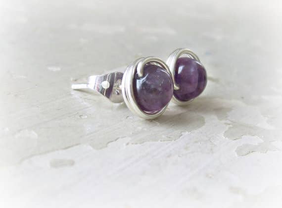 Sterling stud earrings, hand wire wrapped with Turquoise stone beads. I started with 5mm round Turquoise and hand wire wrapped with sterling silver wire (not plated). A base metal ear clutch completes the earrings.