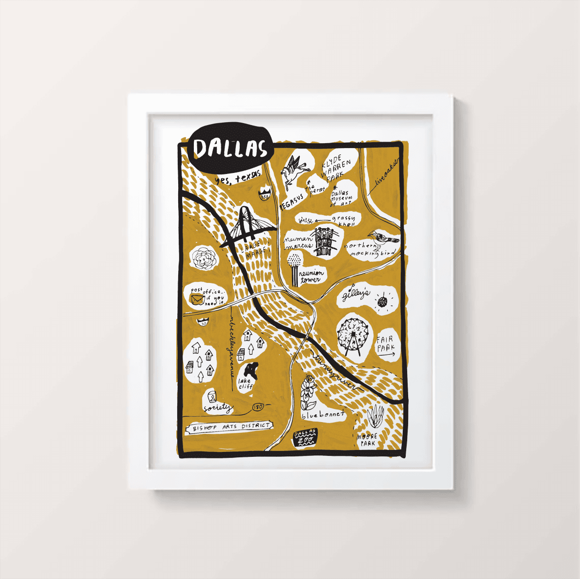 The stars at night! Are big and bright! Sure, they say "don't mess with Texas," but visit Dallas? Please do. From the Pegasus Hotel to Reunion Tower and Fair Park. Tell 'em Large Marge sent ya. 15" x 16”. Screen printed by hand on natural canvas tote.