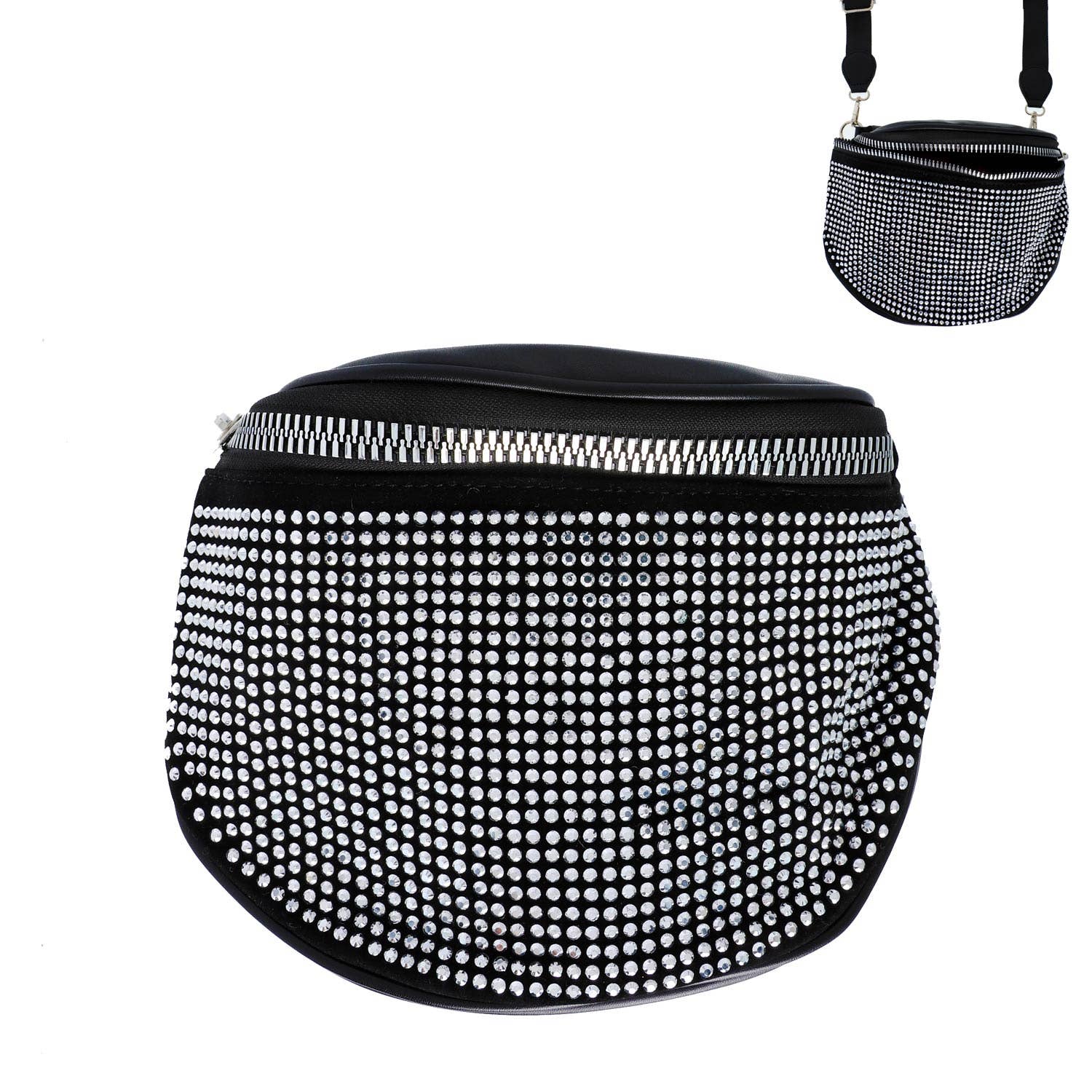 * Rhinestone Clear Belt Bag W/Chain * PVC,IRON * 7W*3.75H*1D * APPROX. WIDTH:1".LENGTH:43" * Introducing the "Rhinestone Clear Belt Bag W/Chain" from H&D Accessories – a stunning blend of sophistication and glamour, featuring exquisite faux pearls, rhinestone and gold chains. This belt bag is not just an accessory, it's a statement piece that elevates any outfit, making you the center of attention wherever you go.