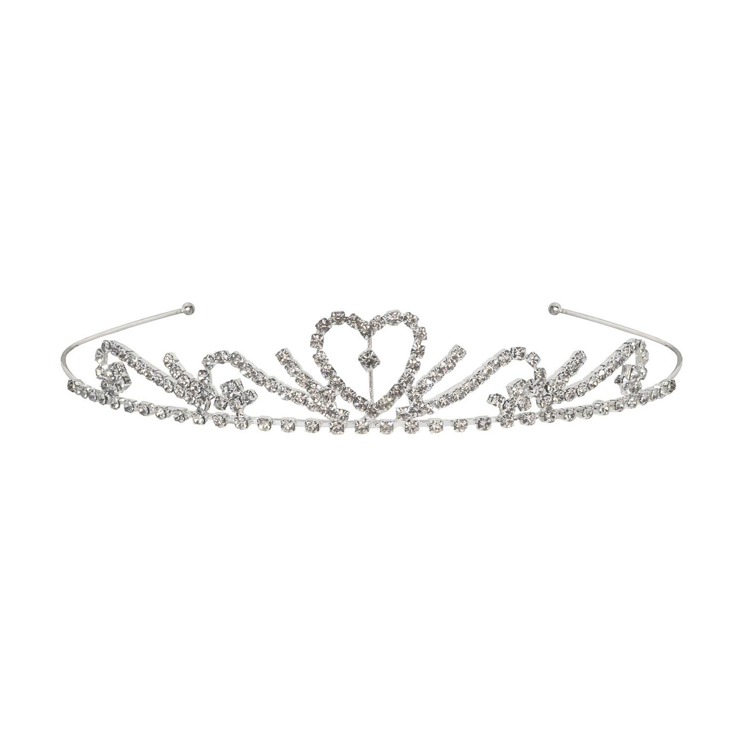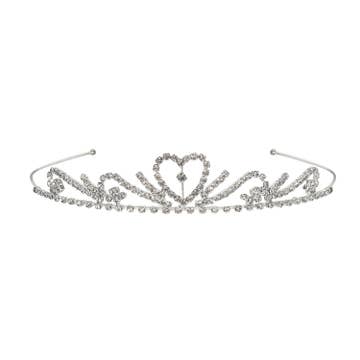 Elegant floral theme bridal tiara or prom crown.  Stands 1" tall with 6" wide headband that can be secured to a veil through the rings at each end.   Made in South Korea of the finest crystals and original rhodium plating, tarnish free to make this an heirloom piece.