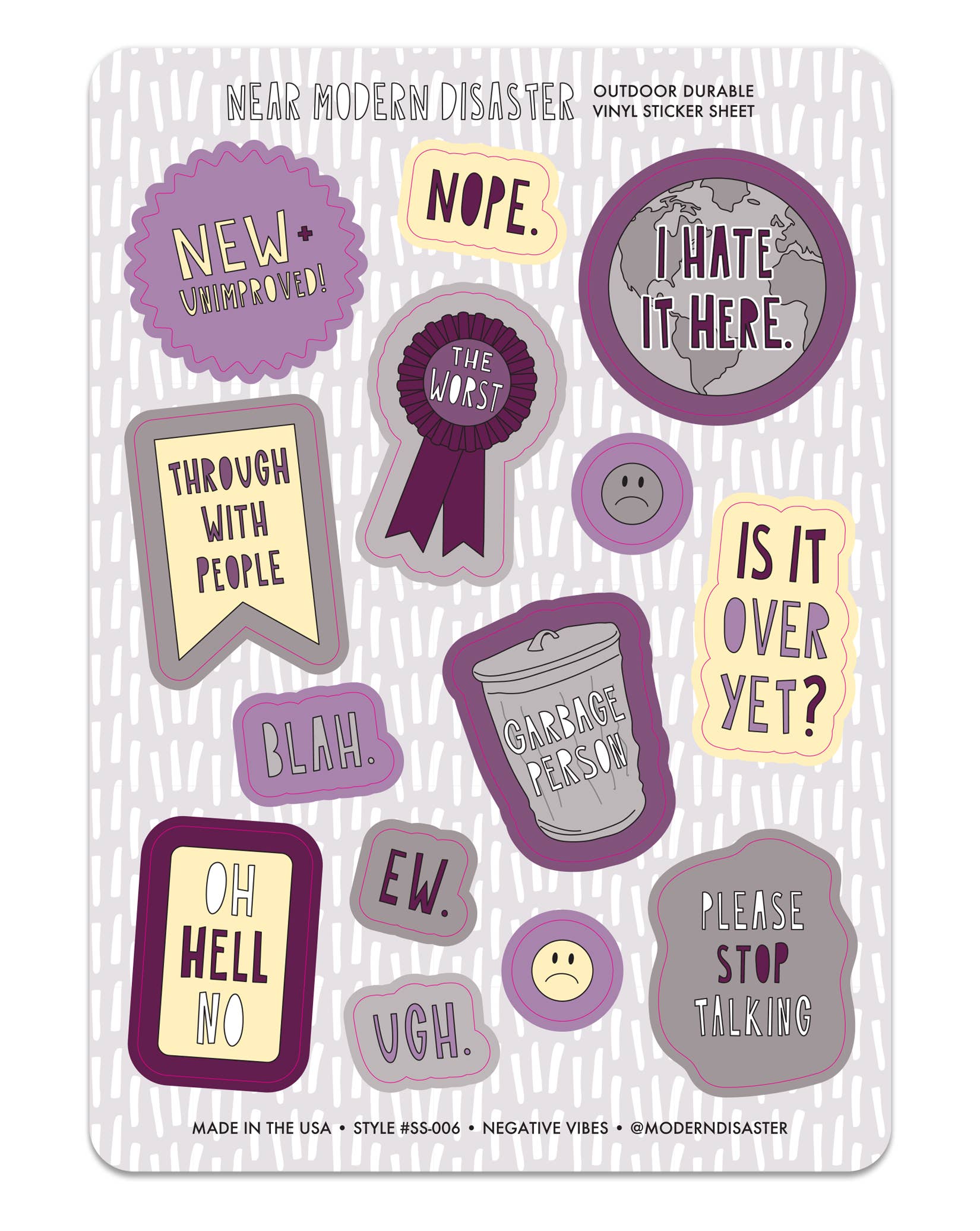 We love Near Modern Disaster stickers! They say what we are all thinking and our customers love them too!