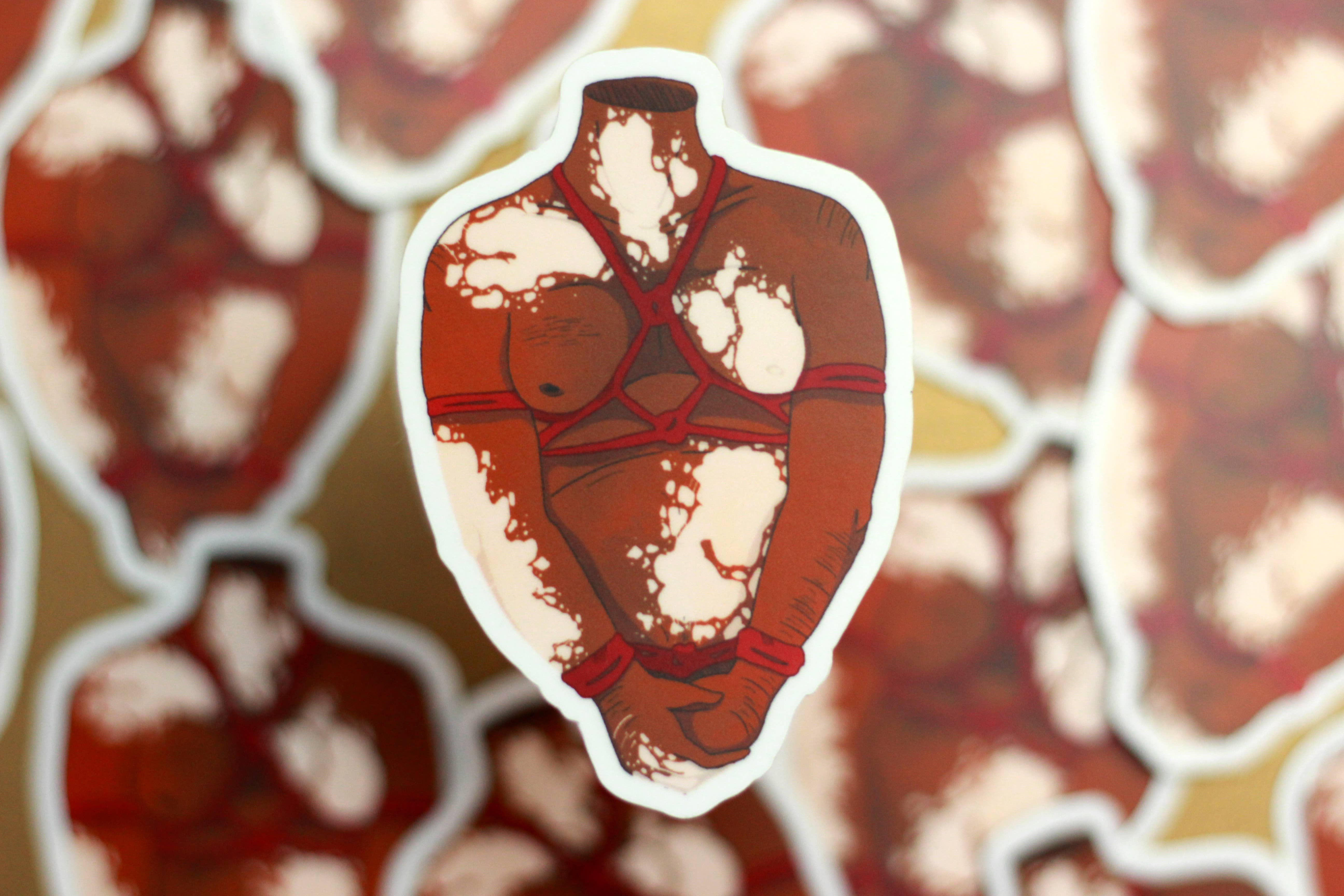 Shibari / bondage sticker. This vinyl sticker is waterpoof and has a features a glossy laminate. ❤ Roughly 3" x 3" ❤ Printed with archival ink ❤ Laminated with a glossy protection that is UV resistant and waterproof ❤ Estimated 2-4 years life