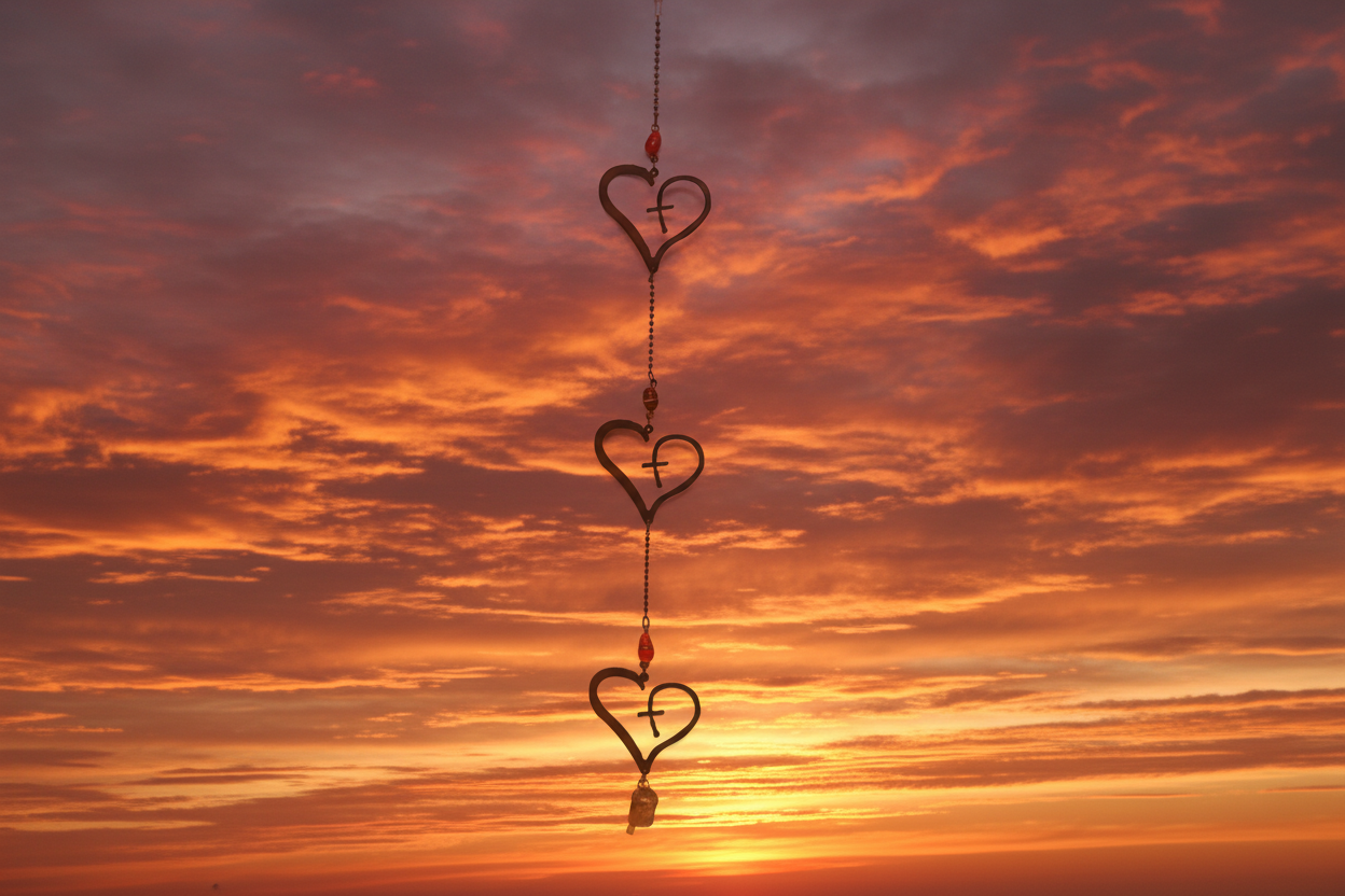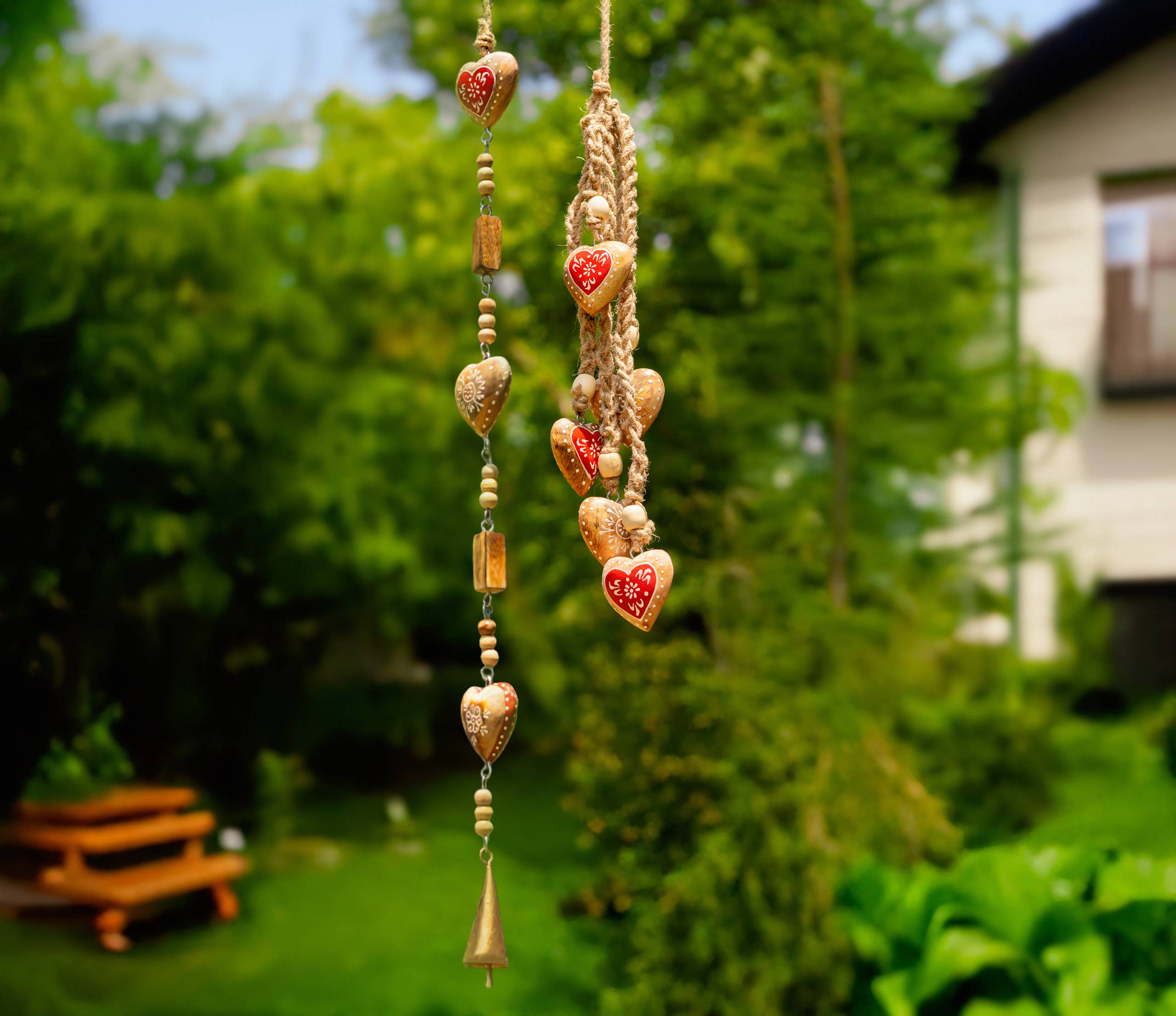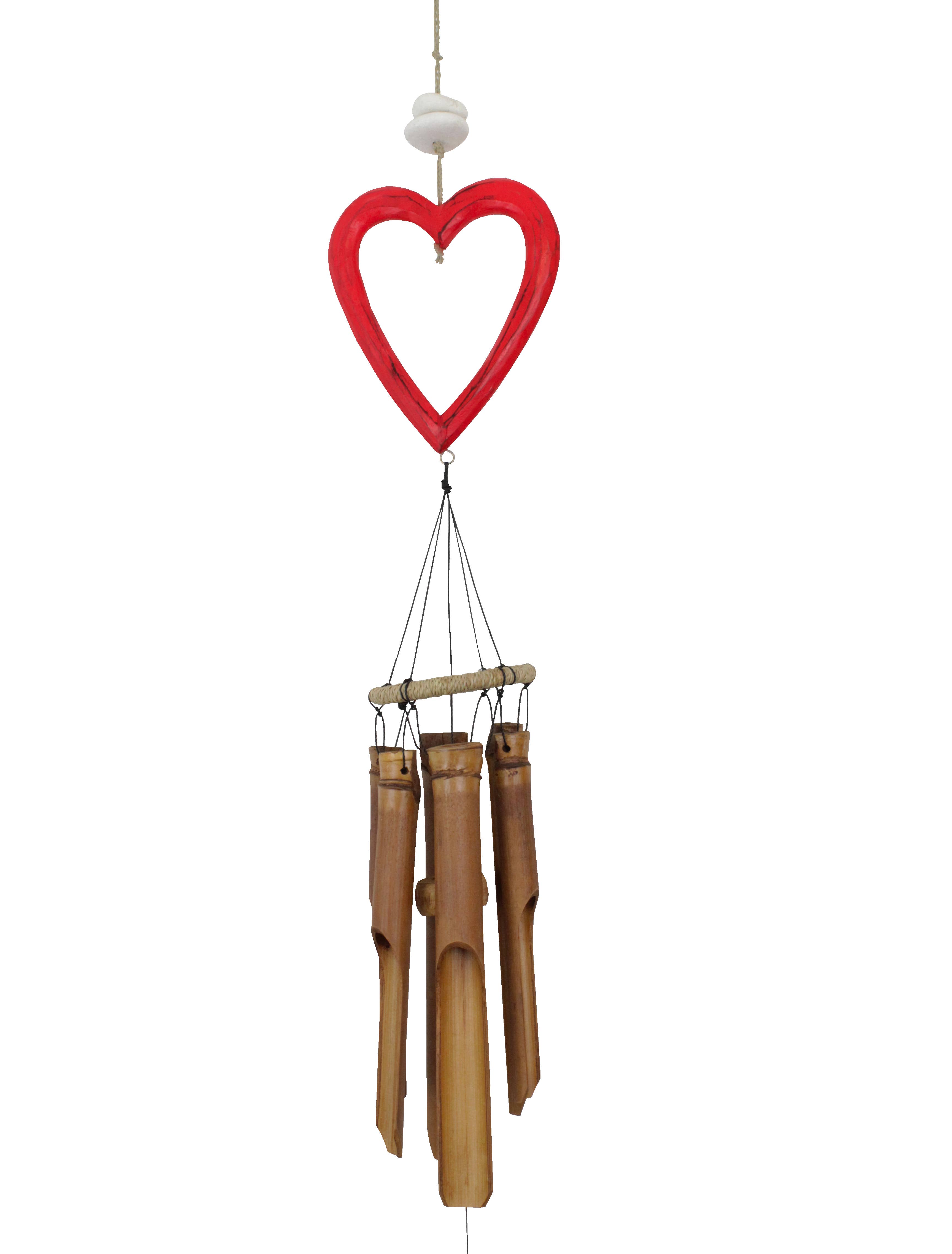 Six Piece Valentine's Heart Bell Chime Pendant on Jute Rope