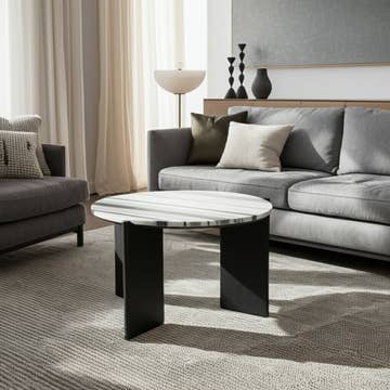Give your living room, family room, or office the perfect anchor piece with this 32" white glass and metal round coffee table. This coffee table is expertly made from high quality metal. The white coloration runs throughout this good looking metal and glass table. This round table features a unique shape to give your room a visually pleasing accent. This table features an updated monotone color scheme with white as the main color on both the top and the base. It has a lovely design that will definitely breathe some fresh air into your interior. This coffee table is the sturdy, reliable and stylish answer to your living room needs. 18" H x 32" W x 32" DFeatures 1 open striking black glass shelf for a modern and contemporary two-tone look. Mixed-material construction combines metal and glass for a unique vibe. Small space friendly designHigh quality and good-looking coffee table. Built to last this coffee table with bottom display shelf is good looking and useful.