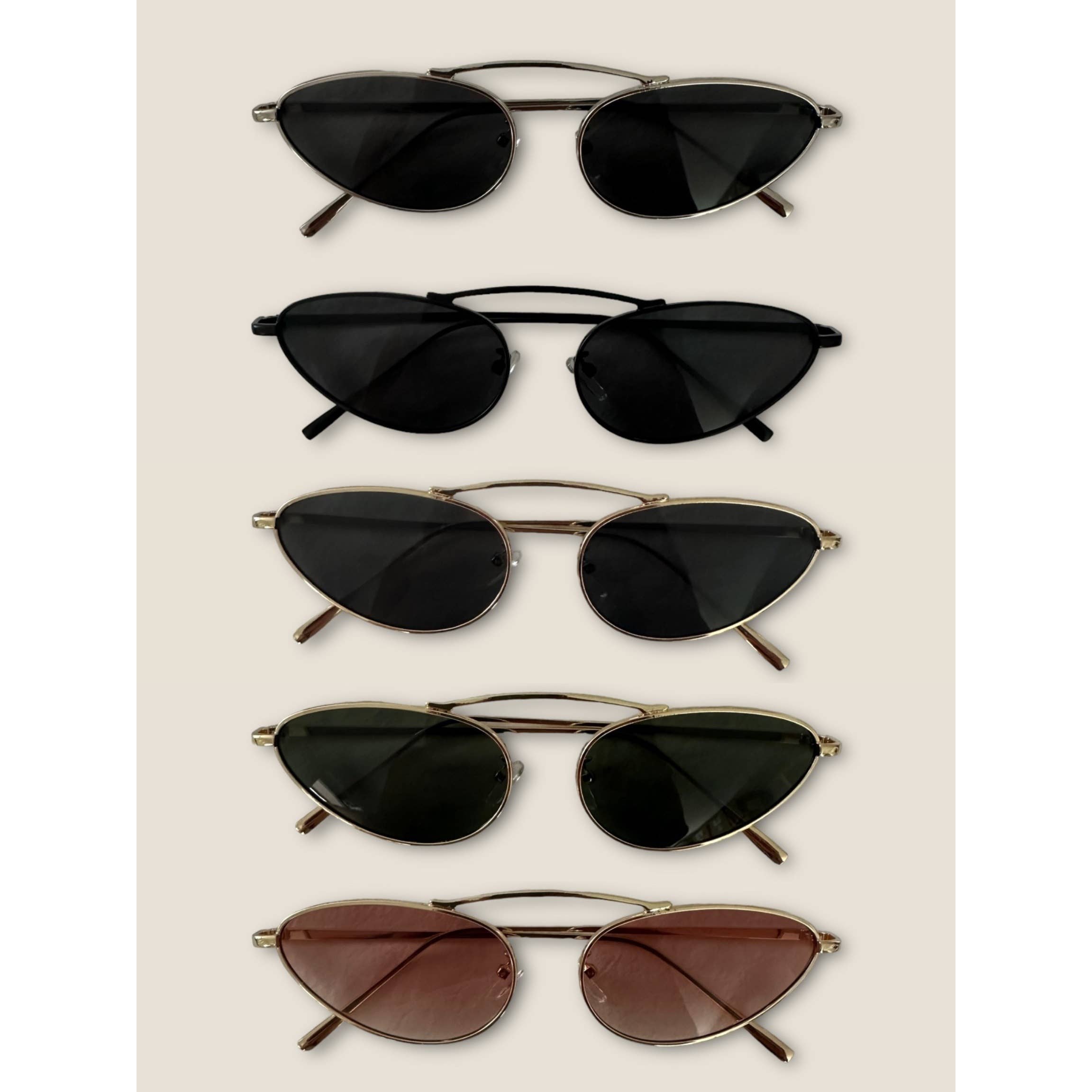 This piece is perfect for those who want to showcase their unique style, this set of sunglasses includes a stunning thin retro fashion sunglasses design. Perfect for dressing up your favorite outfit, this set of sunglasses is a must-have. Available in NO COLOR. This item is sold in packs of 12. This set of sunglasses is made with 100% Alloy.