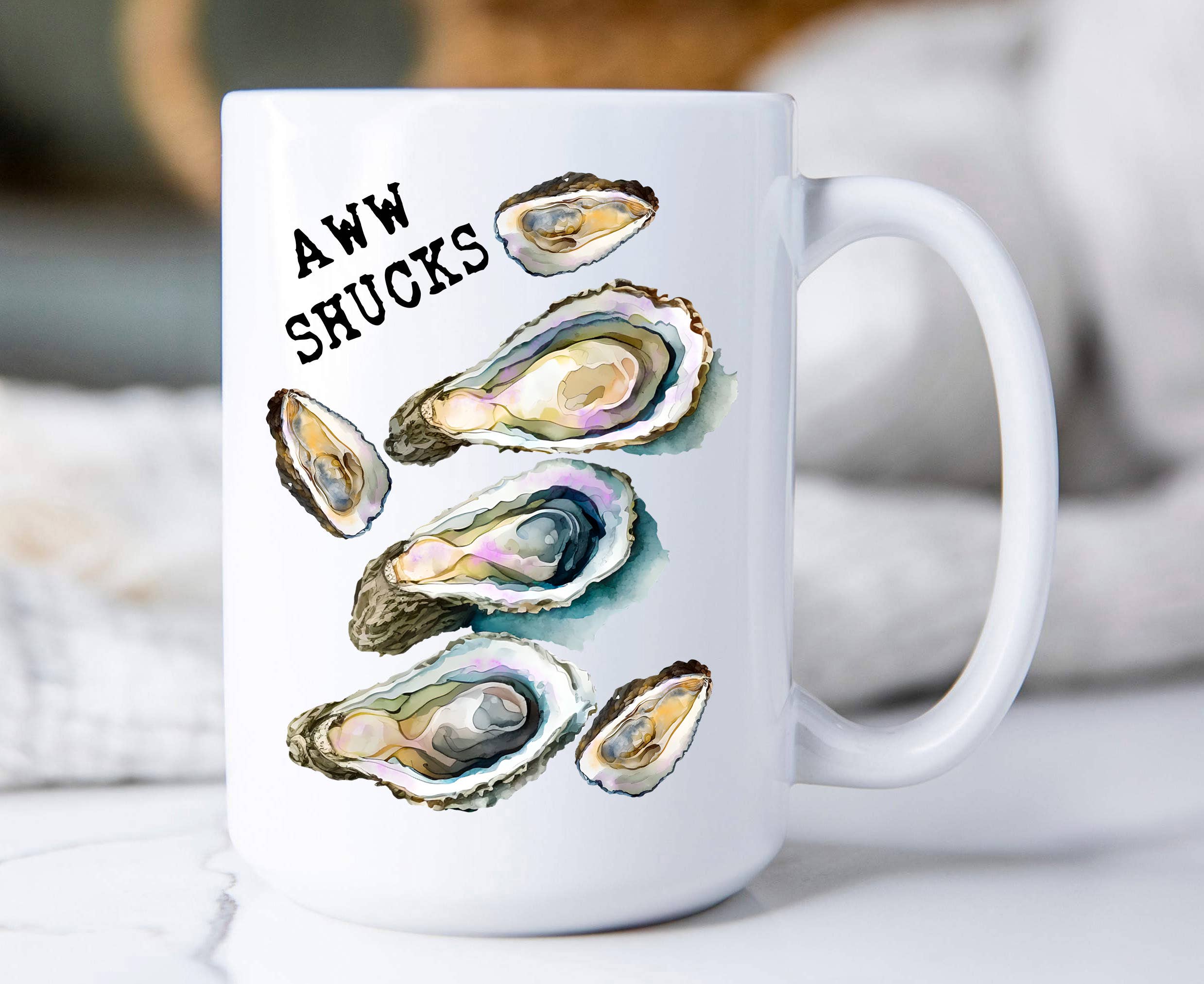 Oysters Shuck Yeah Coastal Beach Flour Sack Tea Towel