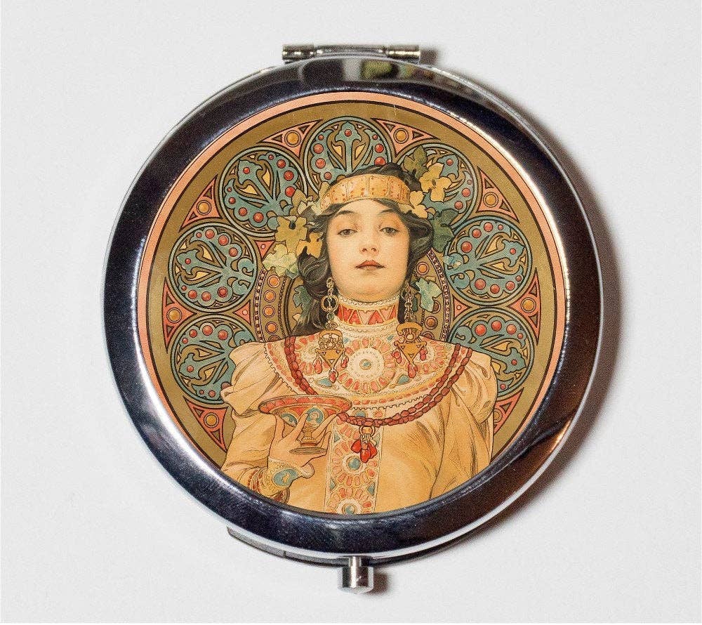 This round pill case can be used to hold both pills and vitamins. You can also use this pill box to stash other small items such as mints, candy, craft supplies, and more (depending on size). The case is compact and lightweight, opening easily with the push of a button. Slip it in your purse or pocket, and you’e good to go! Size: The pill case diameter is about 2 and 1/4 inches. The depth is around 3/4 of an inch. Material: The pill box is made of stainless steel. The image on the front is protected by epoxy. Interior: The case has a hard liner on the inside with a tri-separator that sorts the contents into three compartments. The separator isn’t removable and stays securely in place. Makes a perfect, affordable gift for birthdays, weddings, holidays, anniversaries, sisters, brothers, grandmothers, friends, extended family, and of course, a little something special for yourself! Ships directly from my studio