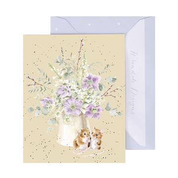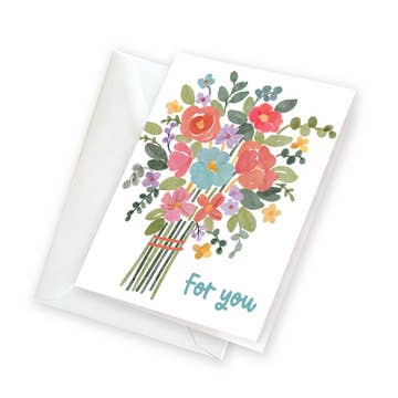 This gift enclosure card features a beautifully illustrated bouquet tied with a bright red bow. It can be used to hold a business card, a gift card, or just a short sentiment. Choose envelope option: 1) a variety of complementary colored envelopes (we will pick for you) OR 2) all kraft, OR 3) all white. Size: 2.5" x 3.75" | 6.35 x 9.525 cm. Paper: 100lb Smooth Cover Inside: Blank Includes: 1 folded card + matching envelope Package: Closed cello sleeve