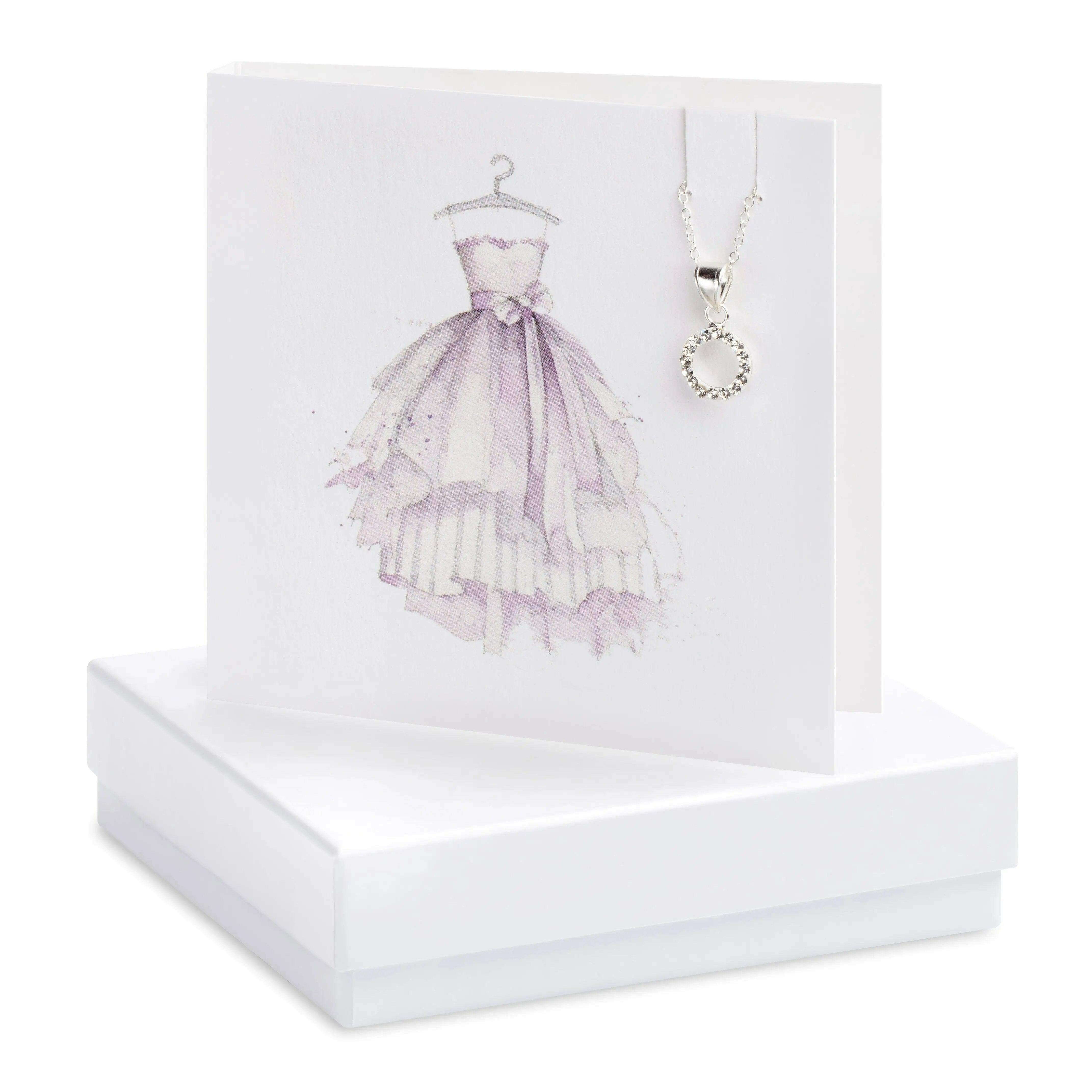White Greeting Card measuring 85mm x 85mm FSC Certified 350 gsm paper that is milled here in the UK Hand finished with Sterling Silver Jewellery 18" Curb Chain with Crystal pendant Blank inside for your own message White or Kraft Brown Gift Box measuring 90mm x 90mm x 23mm British Designed, British Made Card and Gift in One Letterbox Gift Free Delivery in Mainland UK and Northern Ireland