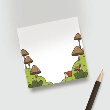 dd a fresh, nature-inspired kawaii vibe to your office, school supplies, or wherever notes are needed with this adorable mushroom memo pad! These are NOT sticky notes, they are memo pads, so they will not stick when peeled! ABOUT THIS ITEM: -4.5 x 3.5 Inches -Includes 50 sheets of 70lbs uncoated paper -Cute mushroom illustration and leaf motif border