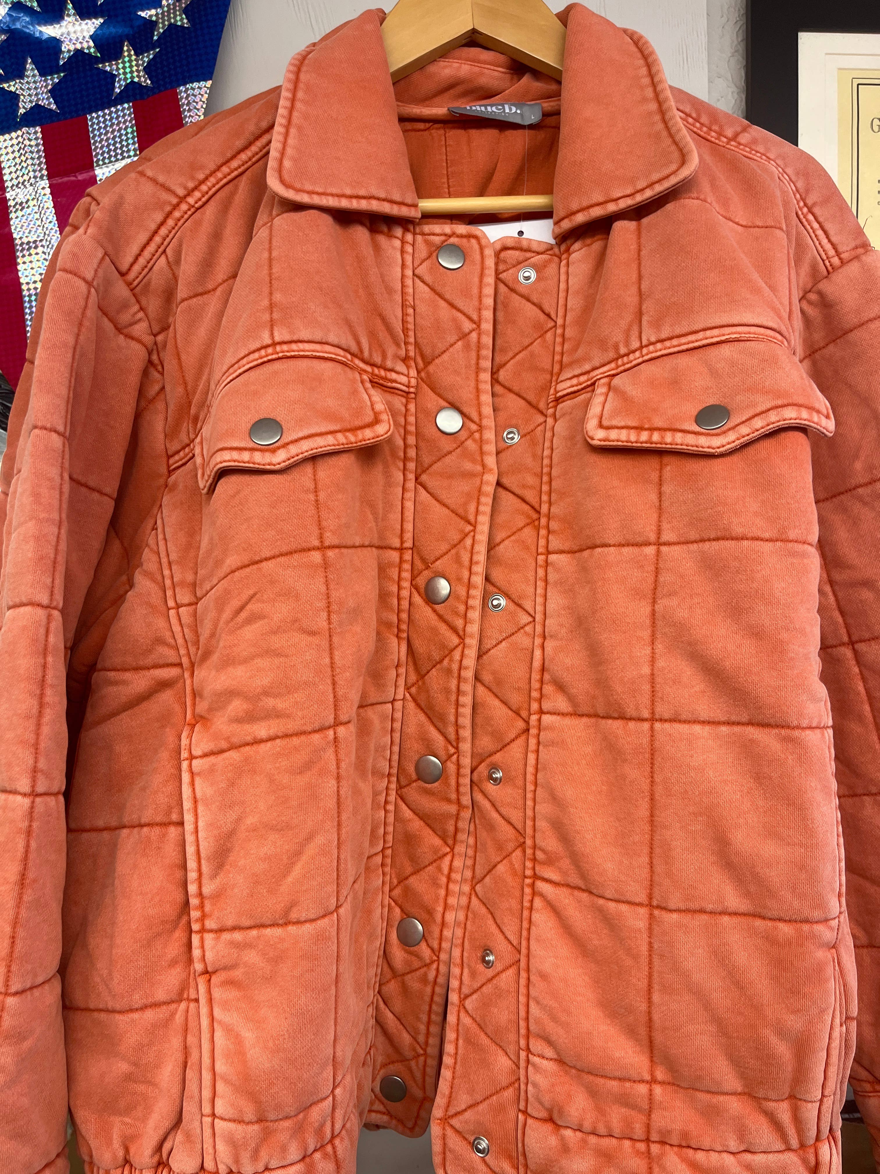 Garment Stone Washed Quilted Pocket Front Oversize Jacket