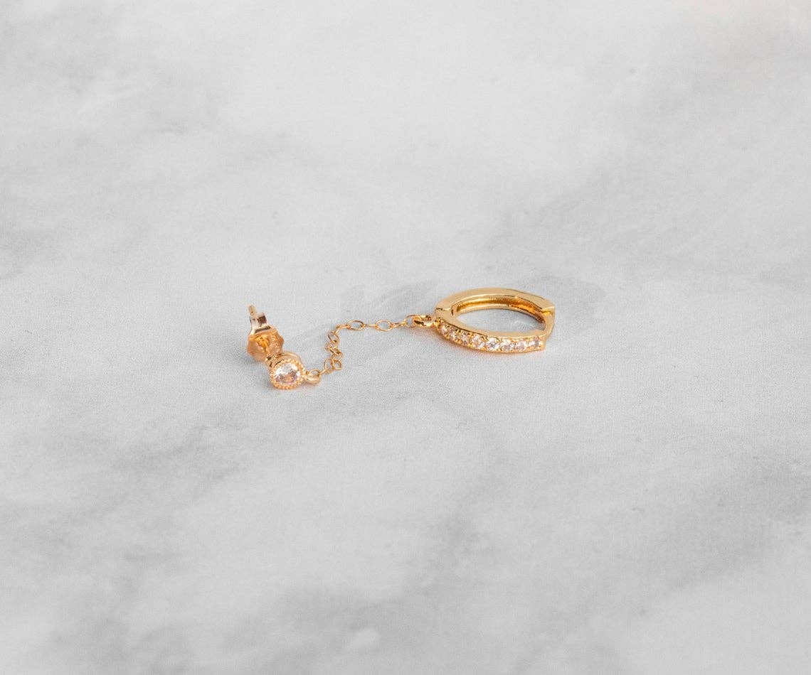 Wholesale Double Piercing Earring Chain - Dainty Chain CZ Double Studs