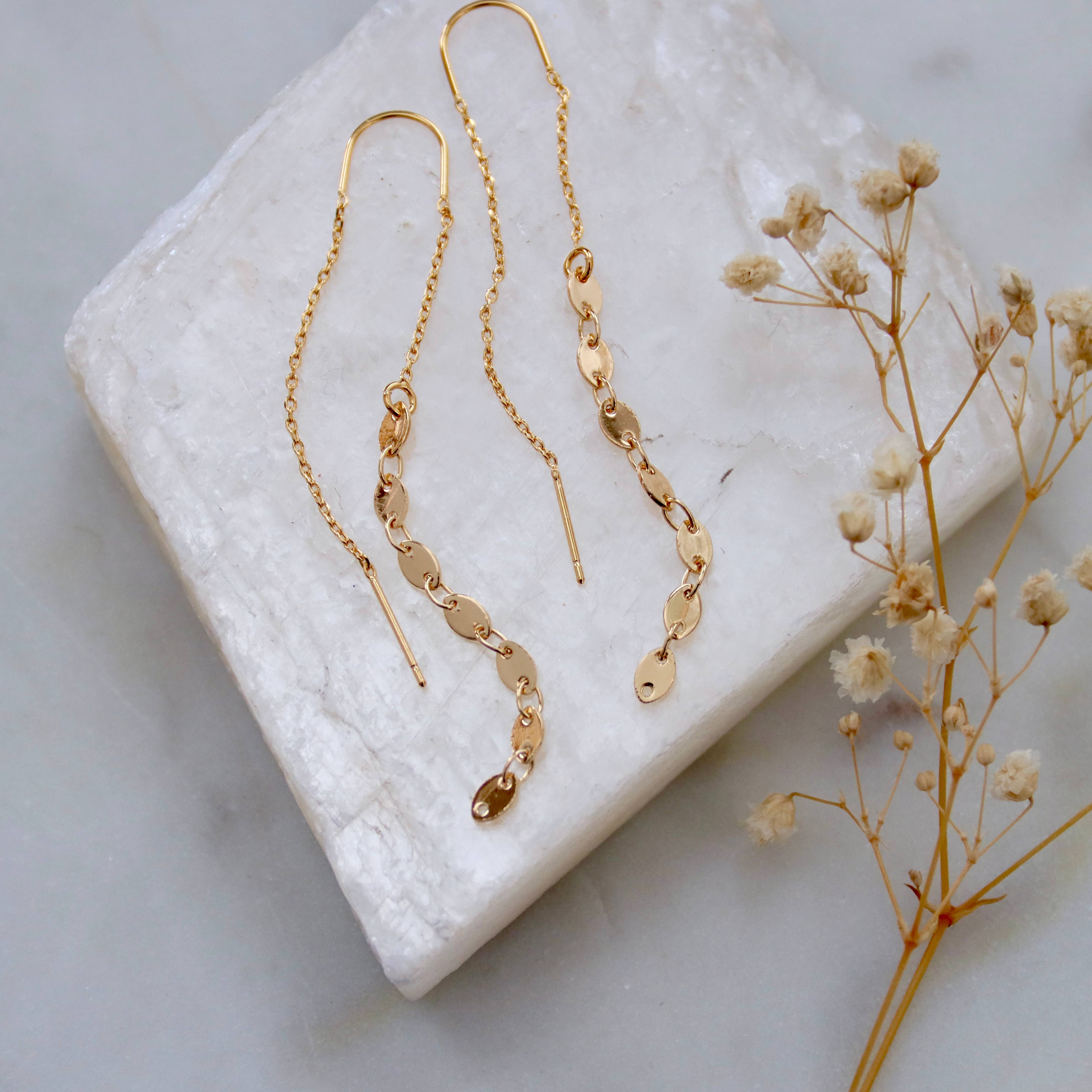 These dainty CZ double stud chain earrings feature 3mm cubic zirconia stones and a one-inch 14k gold filled chain that connects the CZ studs. These double piercing earrings are versatile and lightweight, perfect for everyday wear. These chain loop earrings look amazing with other earrings to create your perfect ear stack. It has gold vermeil 925 sterling silver posts It is lead and nickel free Must have 2 piercings for these to work. These come in sets of 2 so a pair of double studs for each ear.