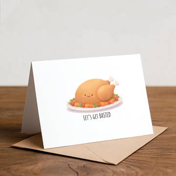 This greeting card features a juicy turkey and baster pattern, paired with a funny pun inspired by Meghan Trainor's "All About That Bass." Great for: Fall 2025, Thanksgiving 2025, foodies, pop culture lovers, Millennial nostalgia Amy Zhang products are a true celebration of New England small businesses, community, and partnership. Each design features an original watercolor illustration, created by Amy in our historic Providence, Rhode Island studio. Greeting cards are printed on locally-sourced paper and packaged by our woman-owned partners in Massachusetts. DETAILS — - Single folded greeting card (blank inside) - Card measures 4.25" x 5.5" (A2 size) - Matching white envelope included - Card and envelope are packaged in open top clear sleeve