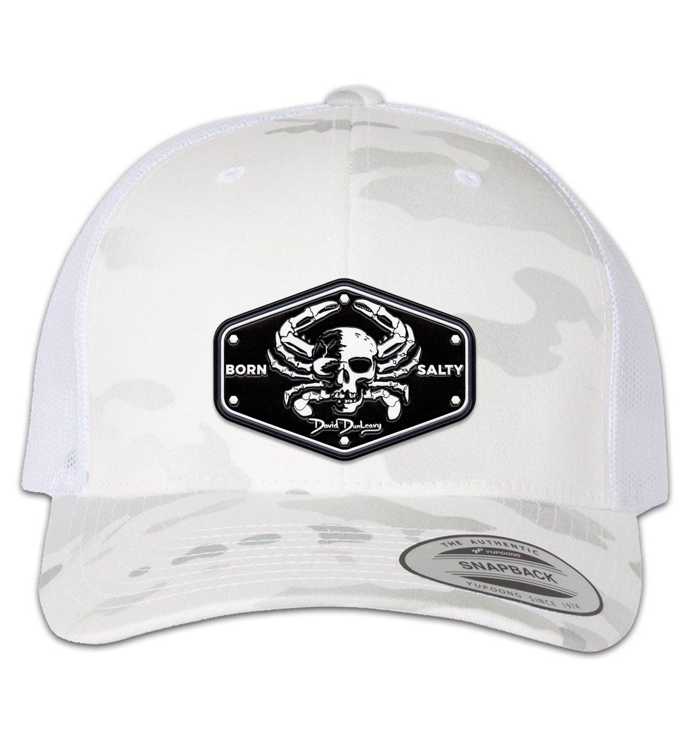 Experience ultimate comfort with the Born Salty Skull Kraken 6 Panel Trucker Snap Back Hat in Multicam Alpine White. This hat is equipped with a mesh back and snap back for added ventilation, making it ideal for warm climates. It also features a stylish Born Salty Skull Kraken patch and is designed for use on and off the water. With its perfect fit, this hat is sure to become your go-to everyday accessory. One size fits most. * 65/35 Polyester/Cotton * Matching Undervisor Mesh Back * Structured, Mid-Profile, Six-Panel * Permacurv Visor * Snapback Closure * Patch Graphic Designed, Assembled and Made in the U.S.A. * Hat size: 6 5/8 - 7 5/8 * One Size Fits Most
