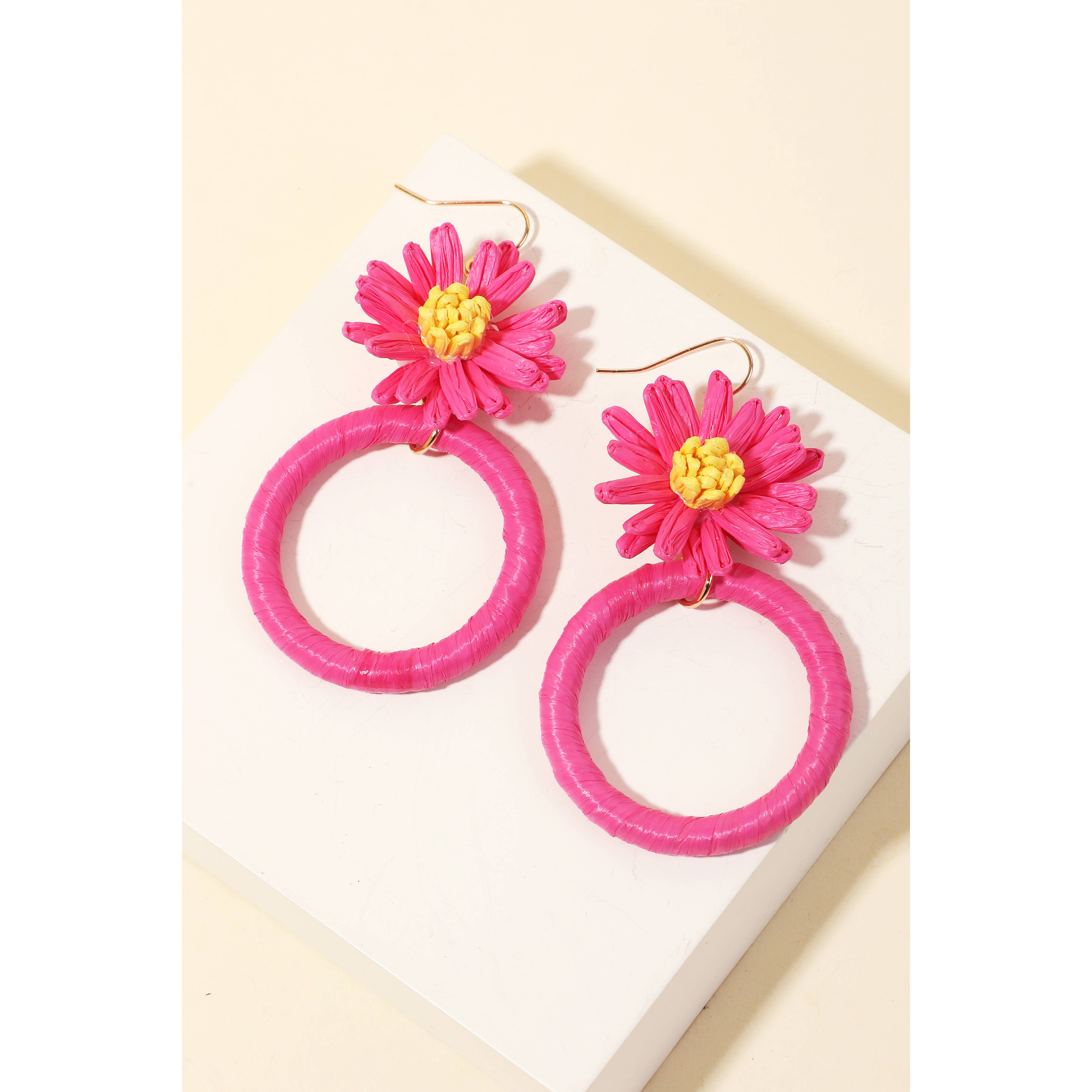 Our fun and colorful assorted flower earrings are made from genuine leather and beads, featuring both studs and dangling earrings. Minimum order is 12 pieces. The material of the hook is Steel plated with chromium.