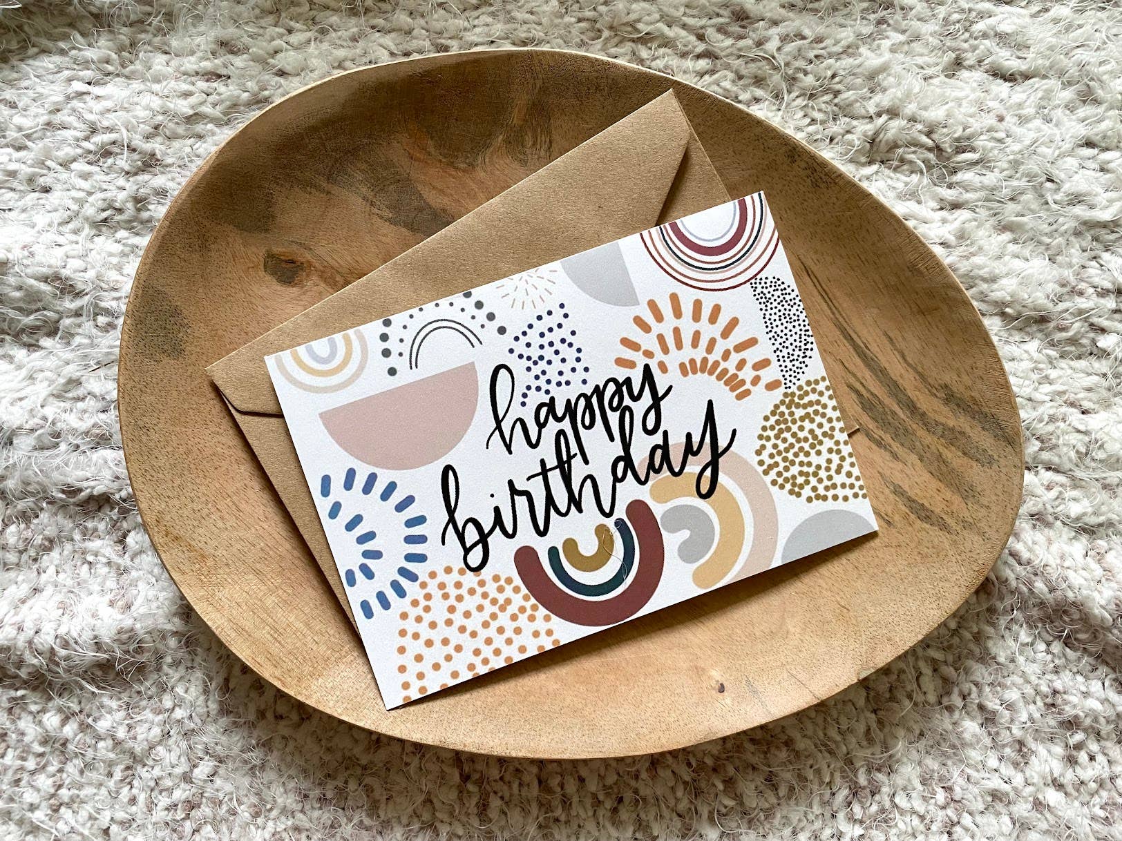 Birthday greeting card comes blank on the inside with kraft envelope.