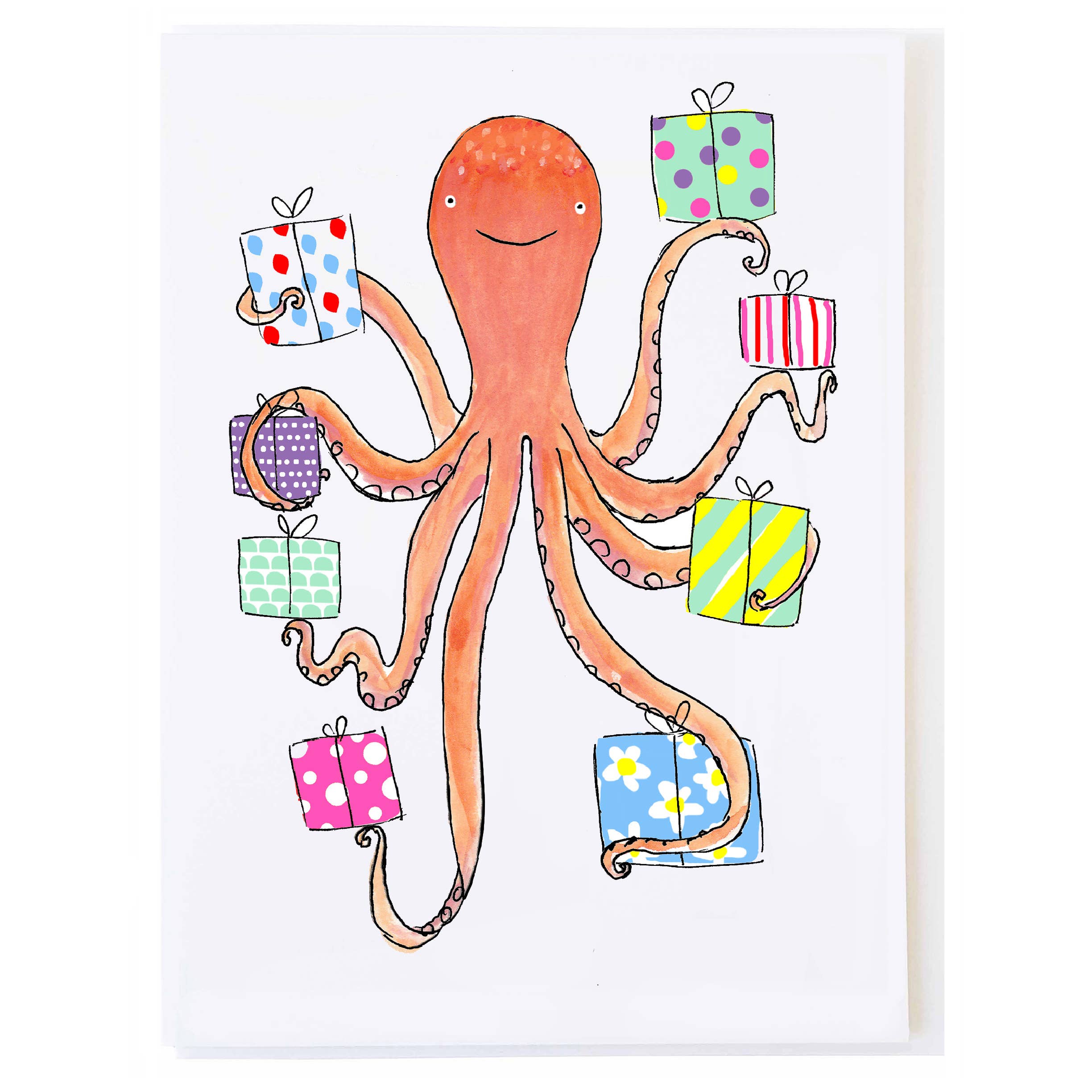 Happy Birthday! Single card in cello sleeve Size: A6 card 45 x 625 Paper: 100lb matte stock Envelope: white envelope Printing: printed in Maine Paper certification: FSC certified