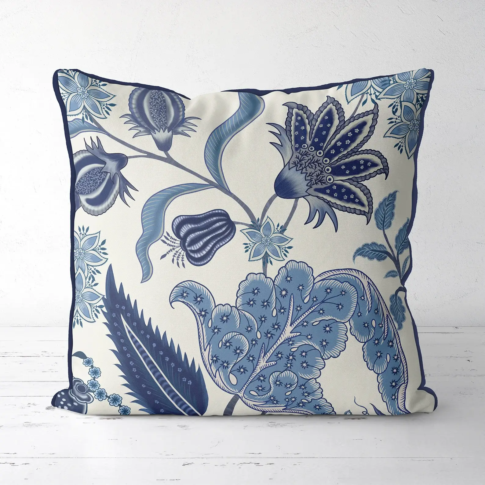 Wholesale Jacobean floral Blue White Chinoiserie Asmara Throw pillow