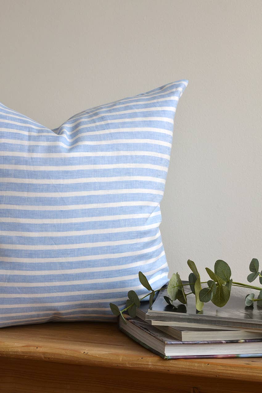 The Katrina Linen Pillow Cover brings classic charm and functional design to your home. Made from 100% natural linen, this double-sided cover features a clean flange edge and discreet zipper closure, making it easy to remove and wash. Offered in a range of 7 versatile colors, it complements both modern and traditional interiors. Whether layered on a bed or used as a statement piece on the sofa, it adds warmth and texture to any setting. Handmade in Canada with attention to detail. Feather inserts available. - 100% linen - double-sided - zipper closure - 22x22" - handmade in Canada - feather inserts available