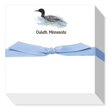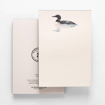 Loon and Chick 6" x 6" Watercolor Art Lined Notebook: $7.50 This lovely lined notebook is perfect to use as a journal, a guest book for a lake house or camp, or to write down whatever needs writing down! "The earth has music for those who listen." -George Santayana I have lived in Maine all my life. When I was growing up, we had a small camp that my Dad built on a quiet pond. One of my favorite camp memories is falling asleep listening to the beautiful, haunting songs as the loons called to each other in the dark. Music to my ears. (-note from Leane, illustrator/owner) * Designed in Maine with care. Made in the USA.