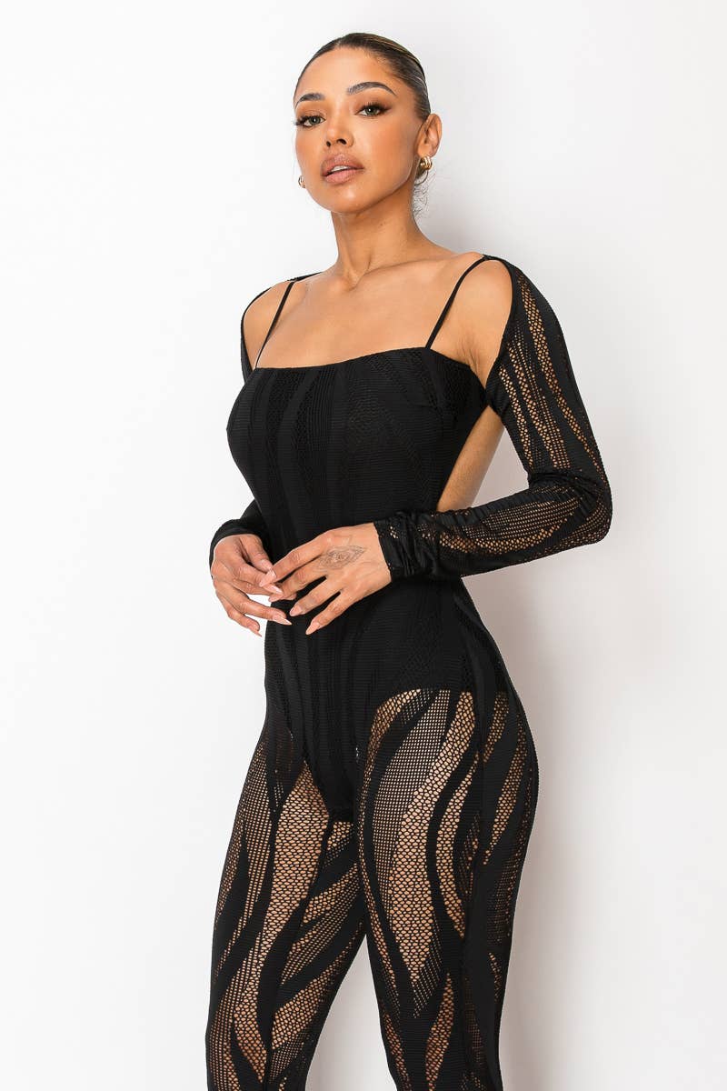 * Style No.:AP24A519HY THIS CROCHET COVER-UP JUMPSUIT IS GIVING US MAJOR SUMMER VIBES. IT HAS A V-NECK, ADJUSTABLE SHOULDER STRAPS THAT CREATE A CRISSCROSS DETAIL AT THE OPEN BACK AND A CURVE-ADHERING FIT TO ACCENTUATE YOUR NATURAL FIGURE. STRAIGHT-CUT LEGS COMPLETE THE LOOK. 100% POLYESTER IMPORTED. DESIGNED IN THE USA