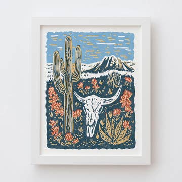 Nature folk art print featuring wilderness motifs, professionally printed on archival cotton paper. Signed, gift ready, and packaged for easy retail display. A perfect addition for boutiques, galleries, and gift shops. Sunset in the desert, coyote and moon phases Key Features: • Size: 8×8 inches (easy to frame) • Printed on high quality cotton paper with archival inks • Signed & titled original artwork • Unframed – versatile for custom framing • Packaged in a clear sleeve with recycled backing board • Includes branded business card inside clear sleeve. • Hand drawn design, Not AI, • Printed in the USA Pinebones is a queer Southwestern illustrator creating folk art inspired by wilderness, wildlife, and landscapes. Based in the remote Utah desert, their work blends storytelling and nature, offering unique art that brings a sense of place and spirit to any space.