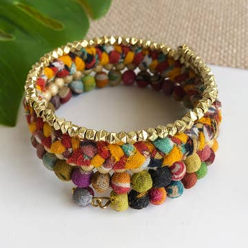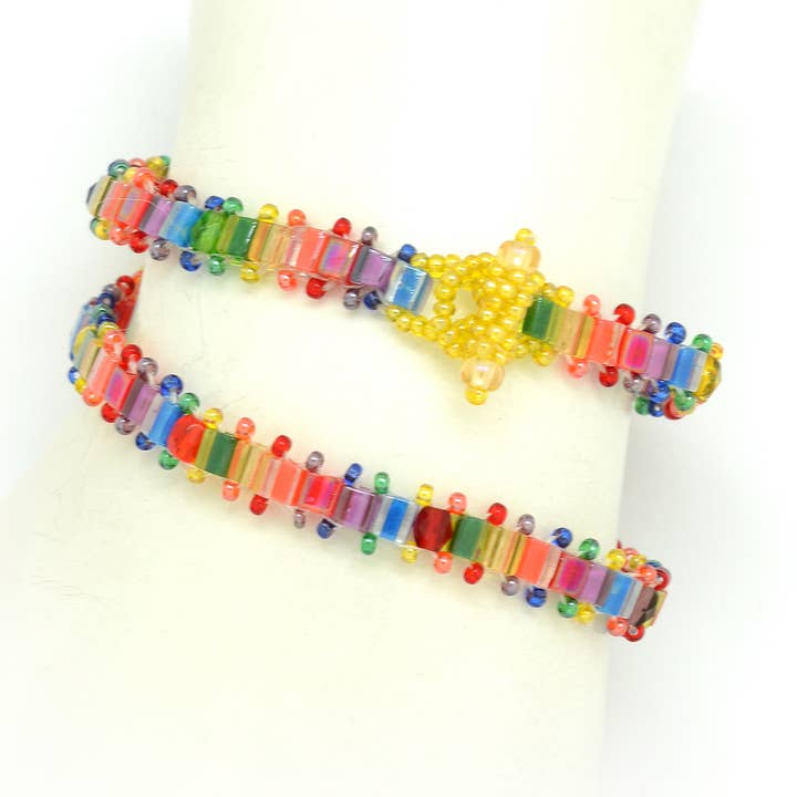 Loomed bracelet. Great for stacking & in rainbow colors. Width 3/16". Made with Czech & Japanese glass beads and metallic thread. Ships as seen. Fair Trade verified