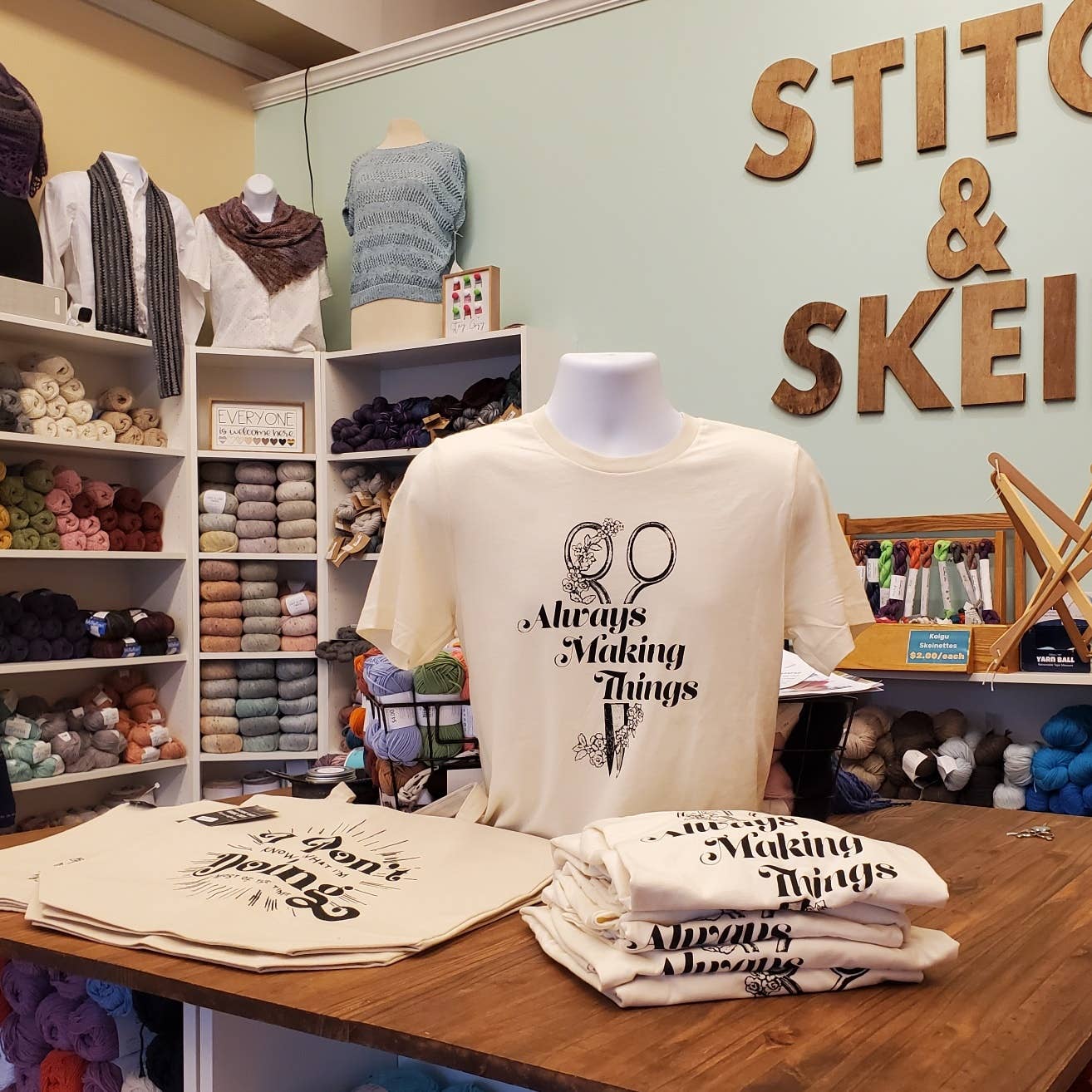 Brought some tees and totes into my little yarn shop for the upcoming fall crafting and holiday shopping season. My order shipped out incredibly fast, and everything in the package is such a great quality and value. I can't wait to see what my customers think when they come into open stitch later this afternoon.