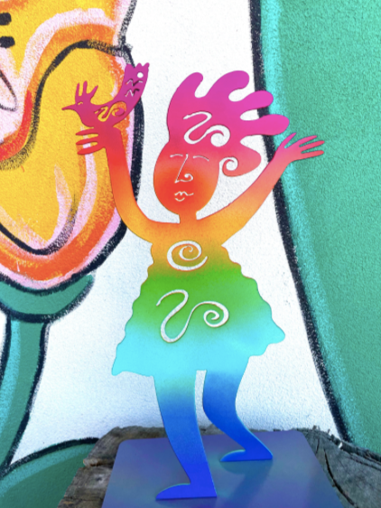 ​This spiritual Deva is always reaching for new levels of understanding and compassion for others.​​ Available in Natural Steel or tie-dye in a variety of cheerful colors!