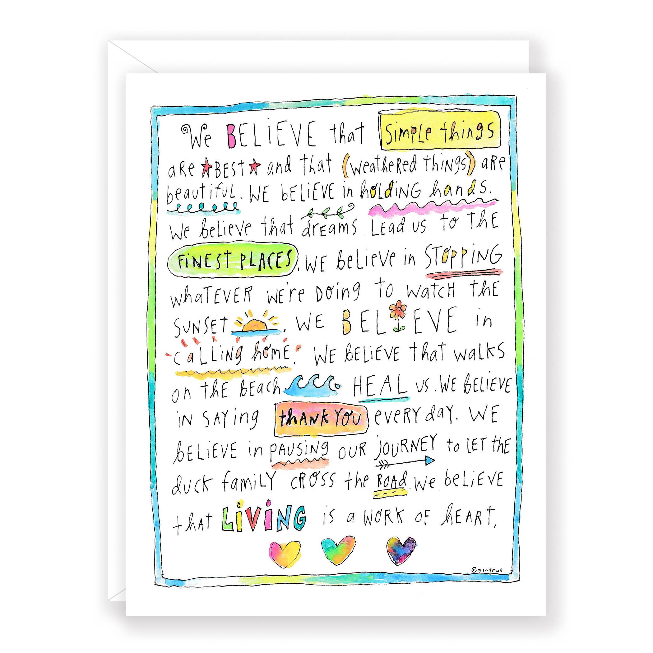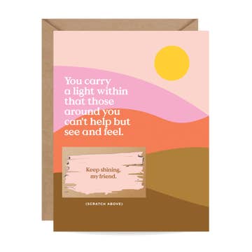 Support card. Printed in the USA on FSC certified paper from managed forests. Comes with color co-ordinated envelope. Packaged in cello sleeve. Features a light glitter. Square cards require additional postage.