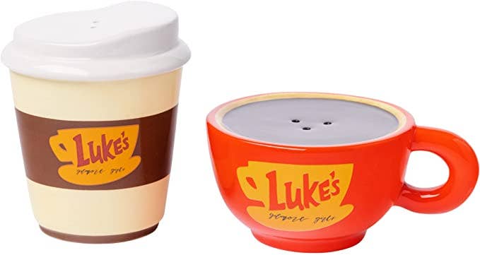 Coffee & Doughnut Ceramic Salt & Pepper Shakers. Hand-painted ceramic sets include 1 salt and 1 pepper shaker. Hand wash with mild soap. Not dishwasher safe.