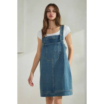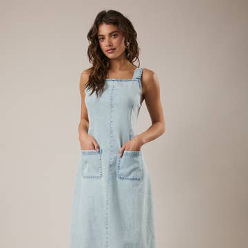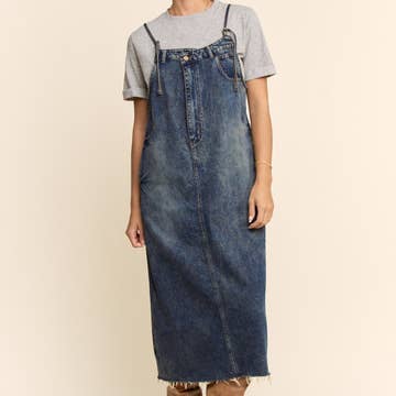 DENIM MIDI SKIRTALL - ADJUSTABLE STRAPS - BELT LOOPS AND POCKETS SMALL: TOTAL LENGTH - 35 1/2" (FROM BUST) MODEL IS WEARING SIZE SMALL. 100% COTTON * Due to lighting and differences in monitors, actual colors may vary slightly from what appears online.