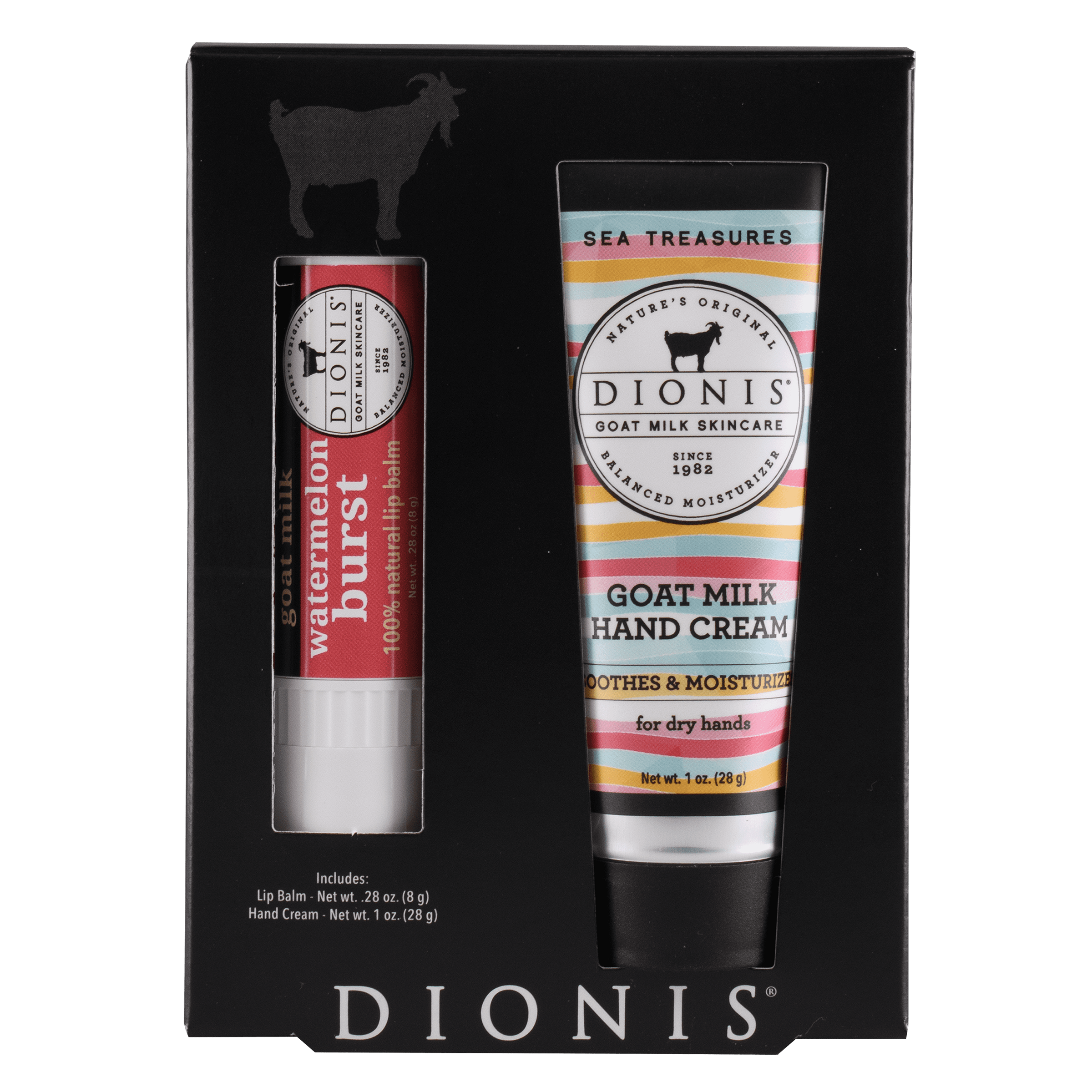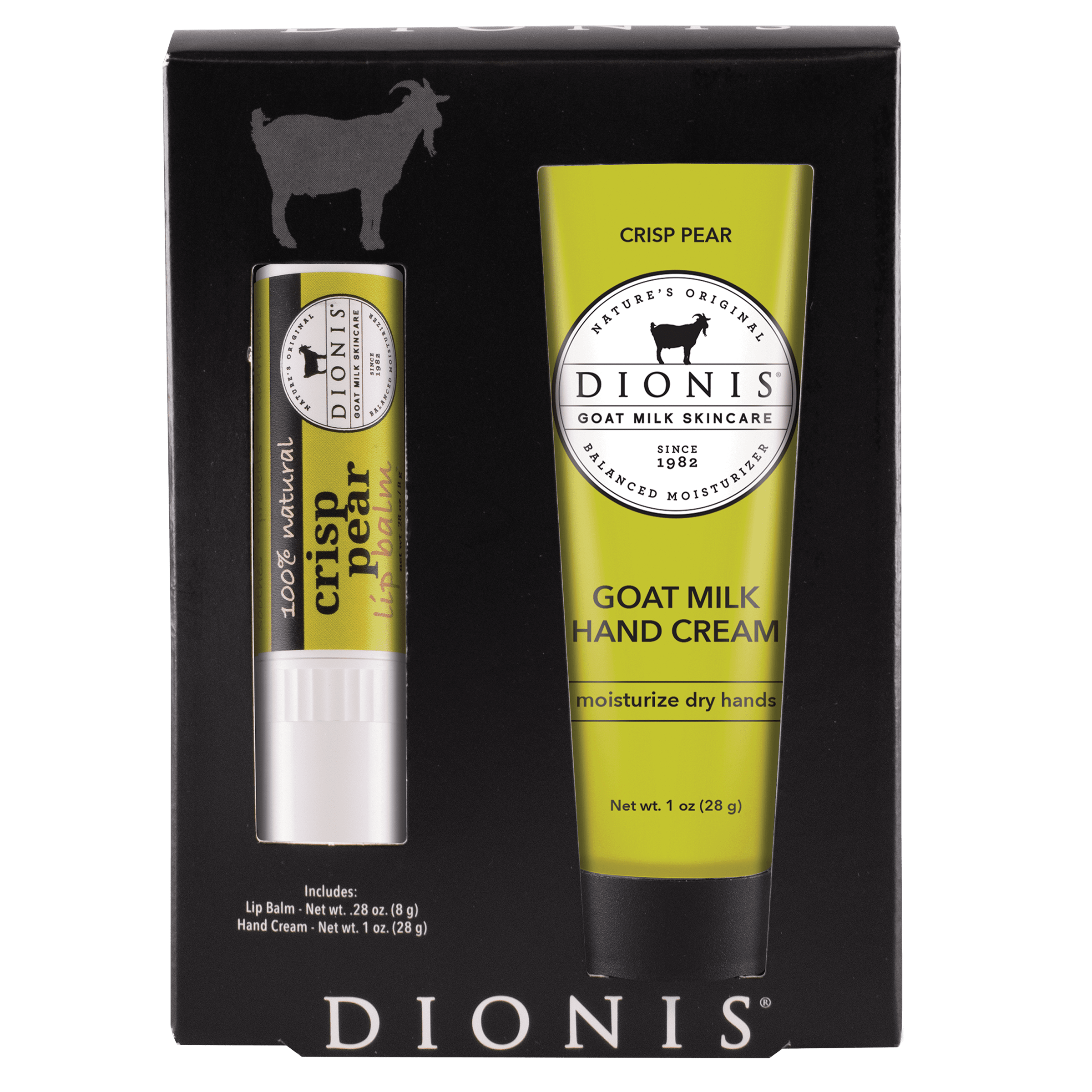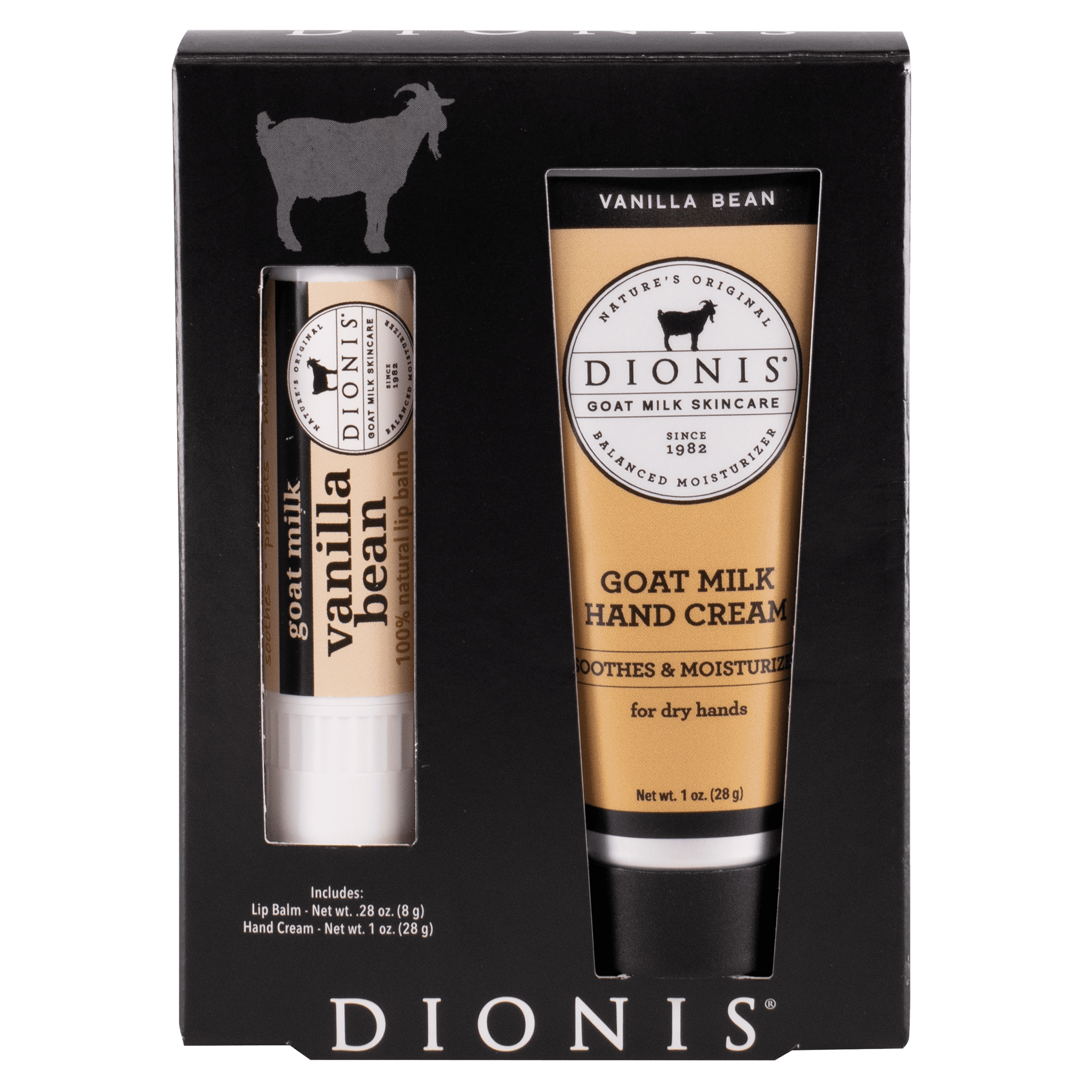 Give your skin and lips the care they deserve with this goat milk lip & hand set. This duo pairs a jumbo Goat Milk Lip Balm with a nourishing Goat Milk Hand Cream, both enriched with vitamins and nutrients from goat milk to comfort and restore dry skin. The lip balm glides on smoothly to soothe, and hydrate chapped lips without greasiness, leaving them soft and supple. The hand cream delivers deep, long-lasting moisture in a rich yet fast-absorbing formula that leaves hands soft, healthy-looking, and beautifully hydrated. Together, they make the perfect everyday essentials for nourishing skin from head to toe. FLAVOR NOTES: Rich, milky goodness, and sweet honey straight from the comb WHY OUR CUSTOMERS LOVE IT: · Set includes jumbo .28 oz. Goat Milk Lip Balm + 1 oz. Goat Milk Hand Cream · Enriched with goat milk vitamins and nutrients for healthy skin · Lip balm soothes, nourishes, and hydrates dry, chapped lips · Hand cream provides deep, long-lasting moisture without greasiness · Leaves lips soft and hydrated, and hands silky-smooth · Perfect for daily self-care or gifting · Rich, milky goodness, and sweet honey straight from the comb BENEFITS: · Made with nourishing goat milk · Clean ingredients · Cruelty-free: Leaping Bunny Certified · Dermatologist-tested · Safe and gentle for sensitive skin