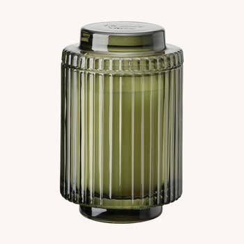 Sights unseen Mysterious air A taste of exotic fruit Top notes - ginger + bergamot Mid notes - cedar + basil Base notes - sandalwood + patchouli Ingredients 100% soy wax Clean burning cotton wick Fine fragrance oils Reusable glass jar Size 8oz | 227g 50+ hour burn time