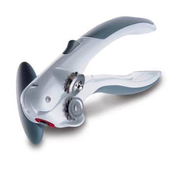 Say goodbye to struggle and strain with this easy-to-use can opener, designed to open cans quickly and smoothly. Its sharp, stainless steel cutting blade glides through metal lids with minimal effort, while the ergonomic, non-slip handles provide a comfortable, secure grip. 8.5" long. Hand wash.