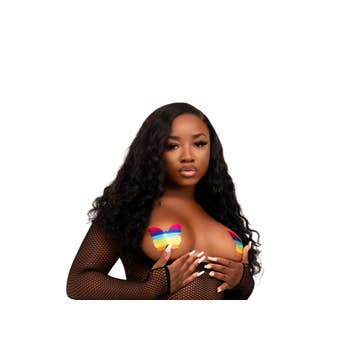 Plus X: Glittering Rainbow Cross Nipple Pasties by Pastease® are hand-made in the USA of soft form-fitting material that forms to curves and resists wrinkling over hardening nipples. Just peel-and-stick on clean, dry skin. All Pastease® feature latex-free, medical-grade, waterproof adhesive that stay securely in place for as long as you like and until they are gently removed. Conceal or Reveal with Pastease® nipple pasties when worn with a sexy outfit, daring bikini, sheer top, revealing dress, Hefty bag, body lotion, crazy costume, party theme or nothing at all! Dimensions: 3 x 3 inches. Coverage Diameter: 1.6 inches. Pastease® are the Funmaker that brings out your inner Tease! All Pastease® products are hand-made, so the finished product you receive may vary slightly from the posted image. Go get your Sexy Fun Freedom On! X♥X♥ Pastease®!