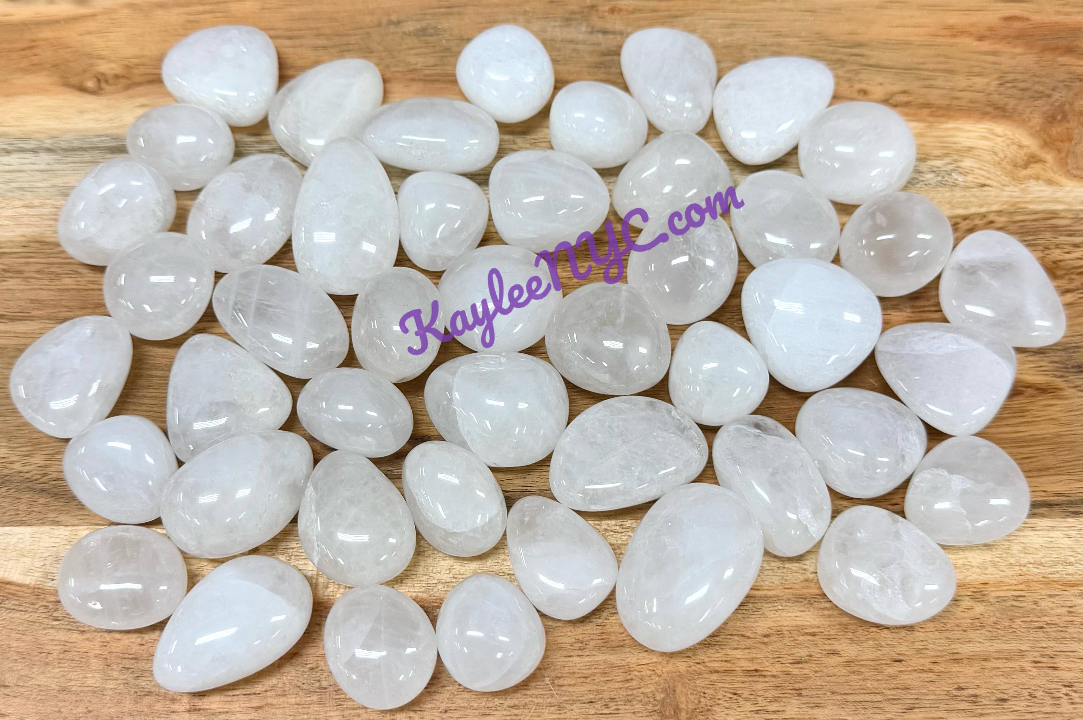 Clear Quartz tumbled semi-precious stone in approximately 30-35mm in size. *Sold in approximate 1kg/2.2lbs. increments. *All natural. *Due to the production process and shipping of tumbled stone, it makes it difficult to give a the exact number of tumbled stone per bag. Approximate range of pieces per 1kg bag for our 30-35mm tumbled stone is about 20-35 pieces. *We receive many shipments of tumbled stone every month and we give specific requirements to our suppliers, however occasionally a random larger or smaller stone may be present in your 1kg bag. We do our best to make sure this doesn't happen but a random large or smaller size may be present. This picture is an representation of the type and quality of the gemstone you will be receiving. As you know, there are slight variations due to the natural character of this product.