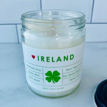 SKU: C-DEST-IRISH Made in United States Benefit: Relaxing Burn Time: 50-60 hours Color: Beige and Black Fragrance Family: Fresh, clean, earthy Handmade: Handmade Number of Wicks: 1 Scent: Earthy & Woody and Green Size: 9 oz Theme: Travel & Adventure Wax Type: Soy Wick Material: Cotton Product Language: English Weight: 453.59 g (1 lb) Dimensions: 7.6 x 5.1 x 5.1 cm (3 x 2 x 2 in)