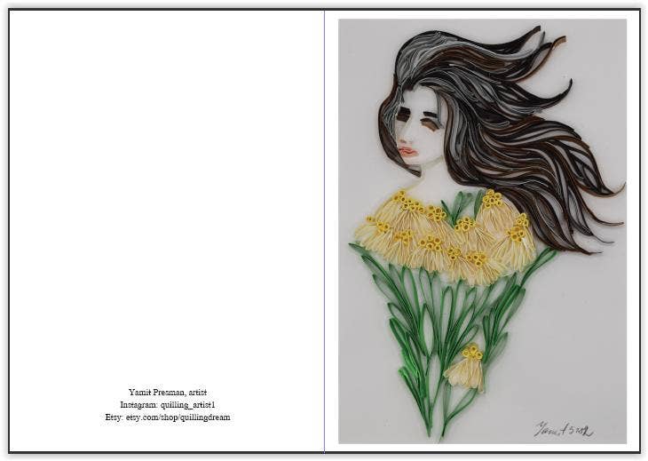 This greeting card is printed from an original quilled paper art "Peonies" It is an awesome any occasion greeting card. It is bright, airy and very special. Printed as a A7 card, comes with an envelope in a clear self sealed cellophane.