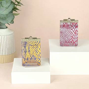 Material: orange embossed python leather.