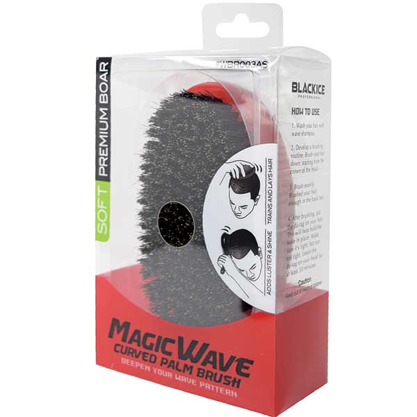 MAGIC WAVE Premium Boar Curved/Club Brush Soft/Hard Handle - Assorted Colors Achieve flawless waves with the MAGIC WAVE Premium Boar Curved/Club Brush, designed to provide top-quality grooming with both soft and hard bristle options. Whether you're just starting your wave journey or looking to maintain deep, defined waves, this brush is built for precision and style. Key Features: Premium Boar Bristles: Crafted with high-quality boar bristles to help distribute natural oils, promoting healthy, shiny hair. Curved/Club Design: The curved shape fits perfectly against the scalp for an even, consistent wave formation, while the club design offers a classic grip. Soft and Hard Bristle Options: Choose between soft bristles for sensitive scalps or hard bristles for more intense grooming and wave definition. Ergonomic Handle: Easy-to-hold handle for comfortable, long-lasting use. Assorted Colors: Available in a variety of colors to fit your personal style. Multi-Purpose: Ideal for all hair