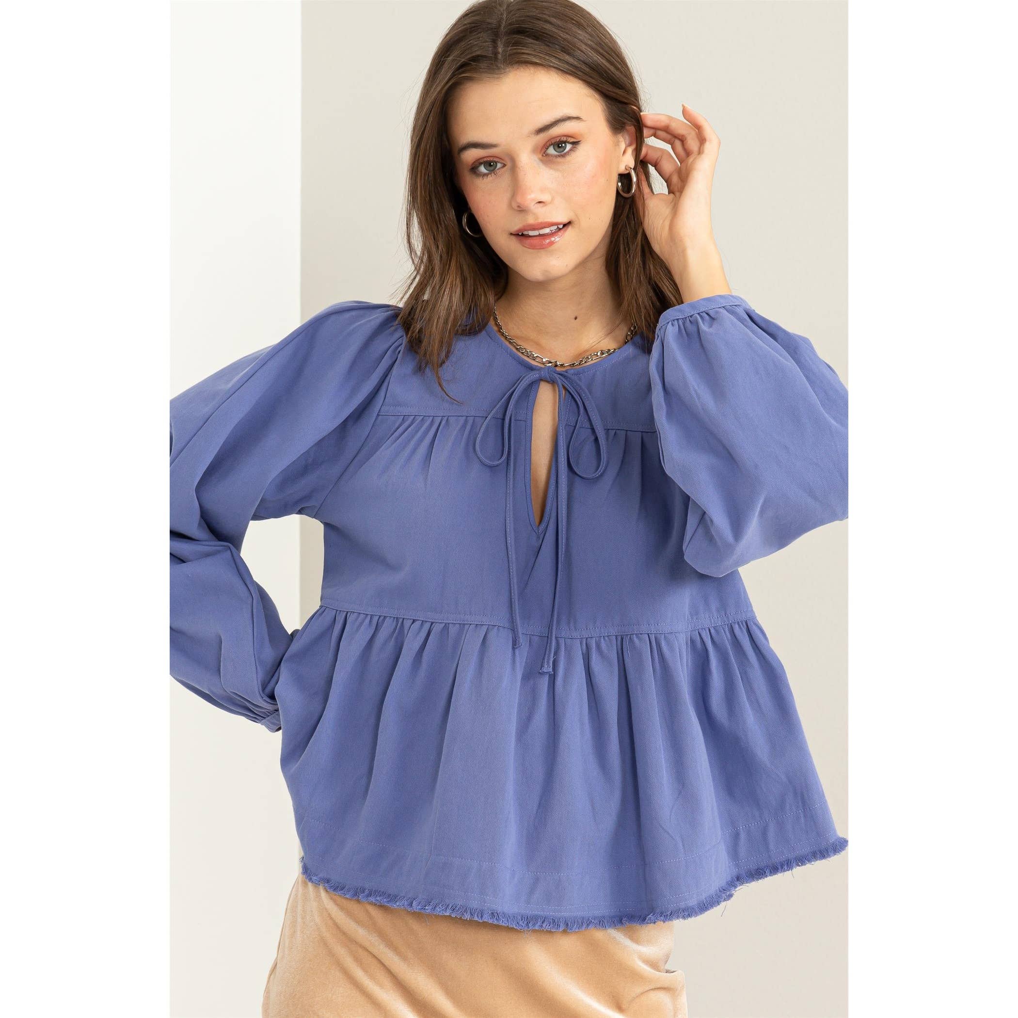 * Style No.: HF26C001 Designed for both casual days and evening outings, this mineral washed top boasts a relaxed fit silhouette, tailored with long sleeves and effortless casual charm. Pair it seamlessly with skinny jeans and ankle boots for a season-transcending look, or layer it under a structured jacket for chilly evenings. 95% cotton 5% spandex Wear With Wine: Hf25f371 Model Is 5' 8" Tall, 32" Chest, 25" Waist, 34" Hips And Wearing A Size Small Imported. Designed In The USA