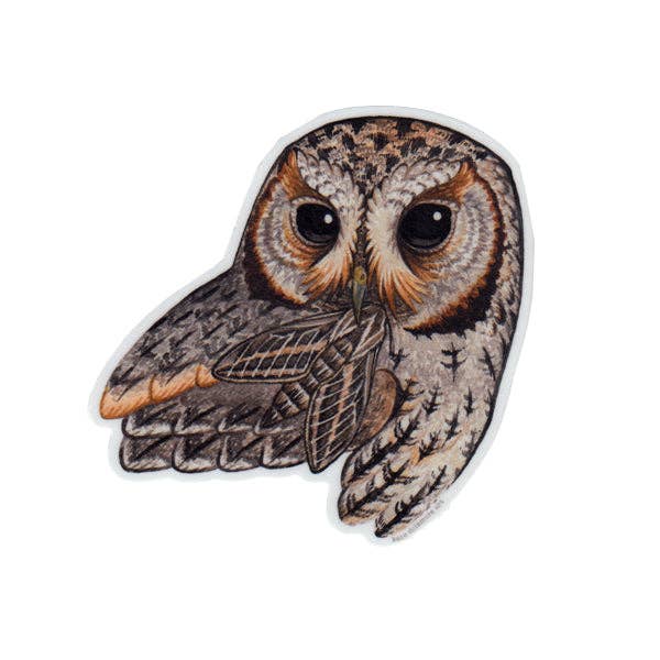 This 3.5" tall vinyl sticker features my original illustration of regal great horned owl on a mossy branch. Each sticker is printed on durable vinyl, weatherproof, dishwasher safe, and appropriate for all sorts of places including water bottles, cars, laptops, notebooks, etc.