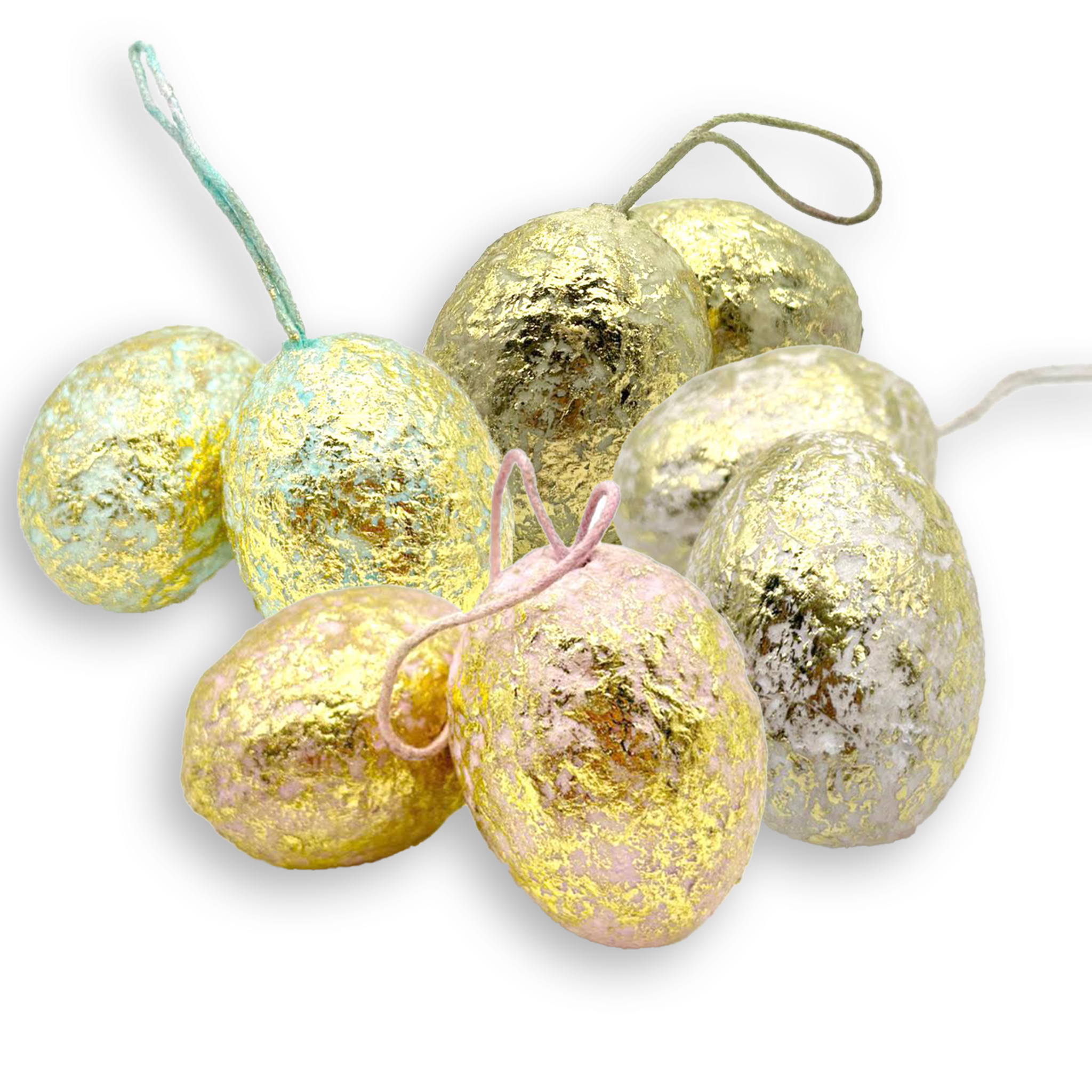 Cut out egg ornament with 2 golden eggs in nest,plastic,3in. Please note that due to the nature of the materials,slight color variations may occur between individual items and compared to images. These differences are minimal and do not affect the overall appearance. The approximate dimensions are: 2.2x2.2x3.1in. The price listed is for EACH INDIVIDUAL item,and the minimum purchase is 12 items. MATERIAL: PVC