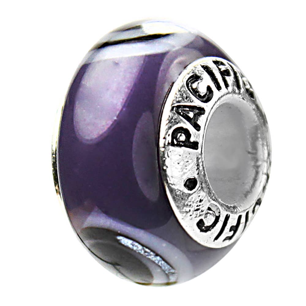 925 Sterling Silver Murano Inspired Individual Glass Bead - cosmos tonight. Create your own one of a kind jewelry with this full sterling silver core Murano-style glass bead. Each bead is unique and no two beads are identical making them perfect as a solo piece or paired with other beads and charms. The bead has a diameter of 4mm. The bead length is 14mm and the width is 9mm.