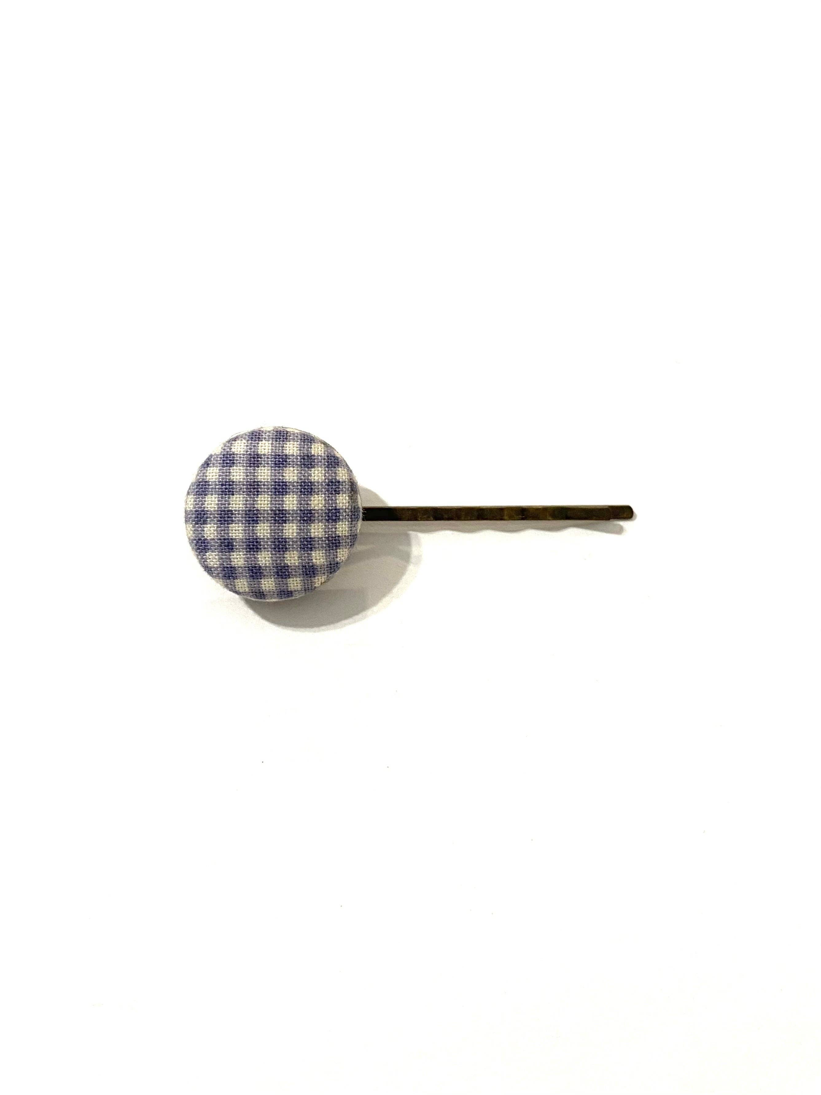 BOTÓN DE AZÚCAR - Brass Tone- Blue Gray Gingham