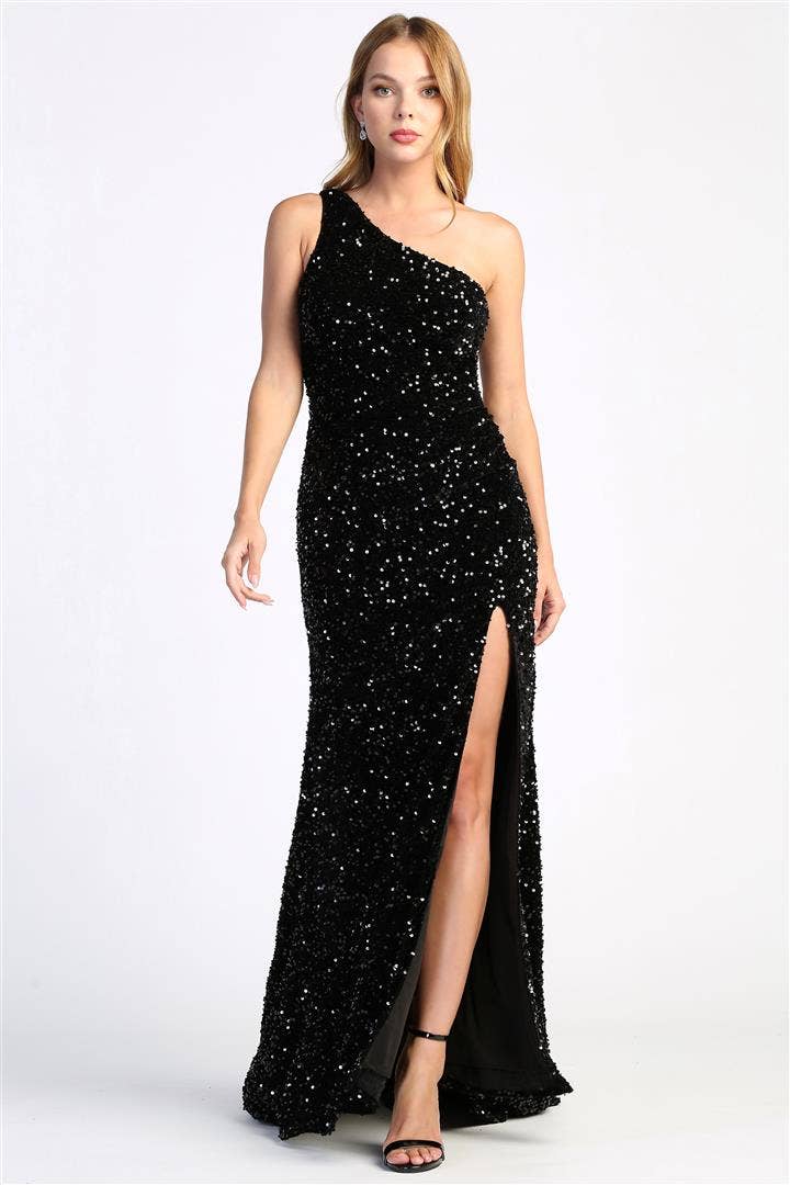 La Scala - Wholesale Dress - Women's - Glittered ITY Back lace up mermaid dress with waist shirring35