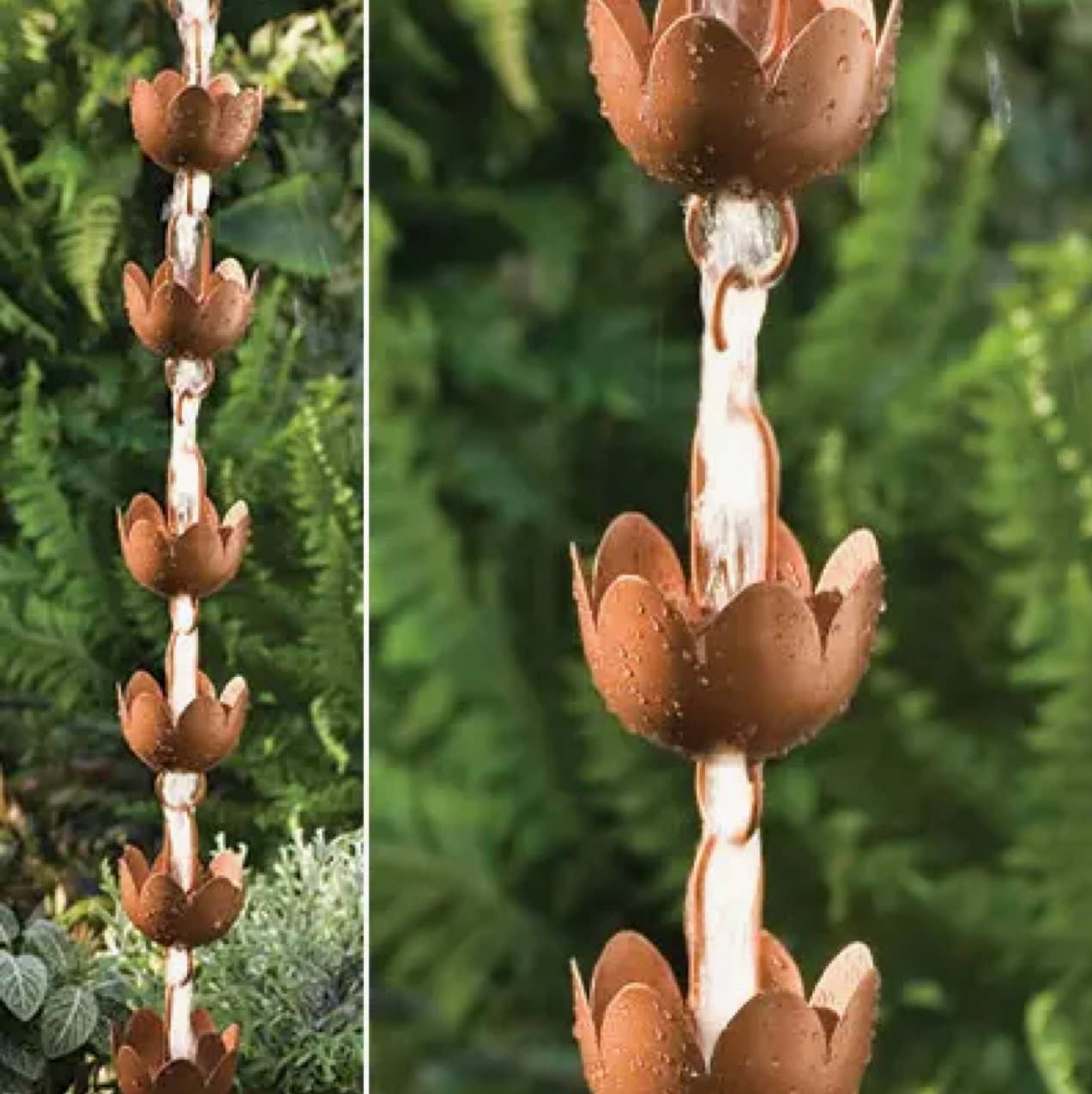 Immerse yourself in the tranquil beauty of nature with our Flamed Lily Cup Rain Chain. Designed by Ancient Graffiti, this outdoor decor piece marries functionality with elegance. It's crafted by skilled artisans using top-grade materials, ensuring it lasts for years, offering you exceptional value. As rainwater cascades down the chain, it creates a serene spectacle, transforming your garden into a haven of peace. Its unique flamed lily cup design adds a touch of intrigue, making it a captivating addition to any outdoor space.